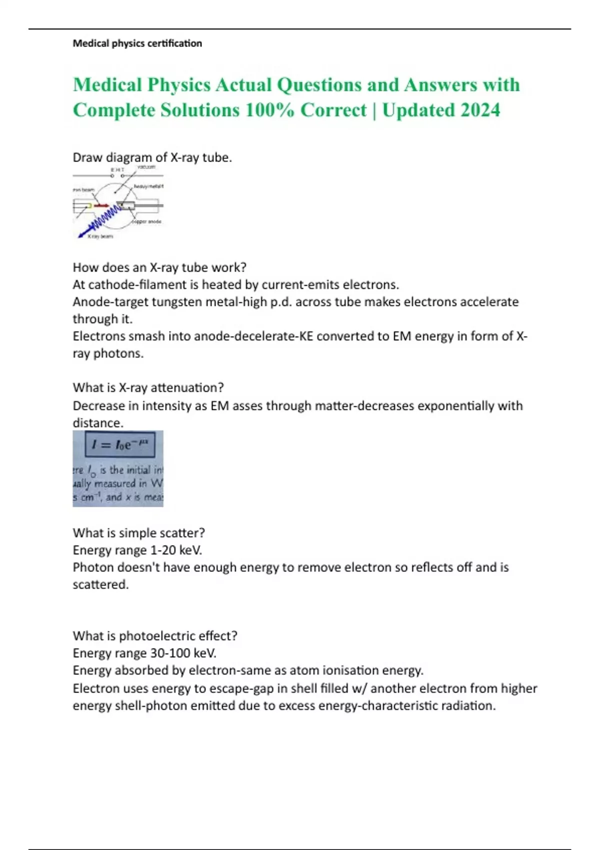 Medical Physics Actual Questions and Answers with Complete Solutions 100% Correct | Updated 2024