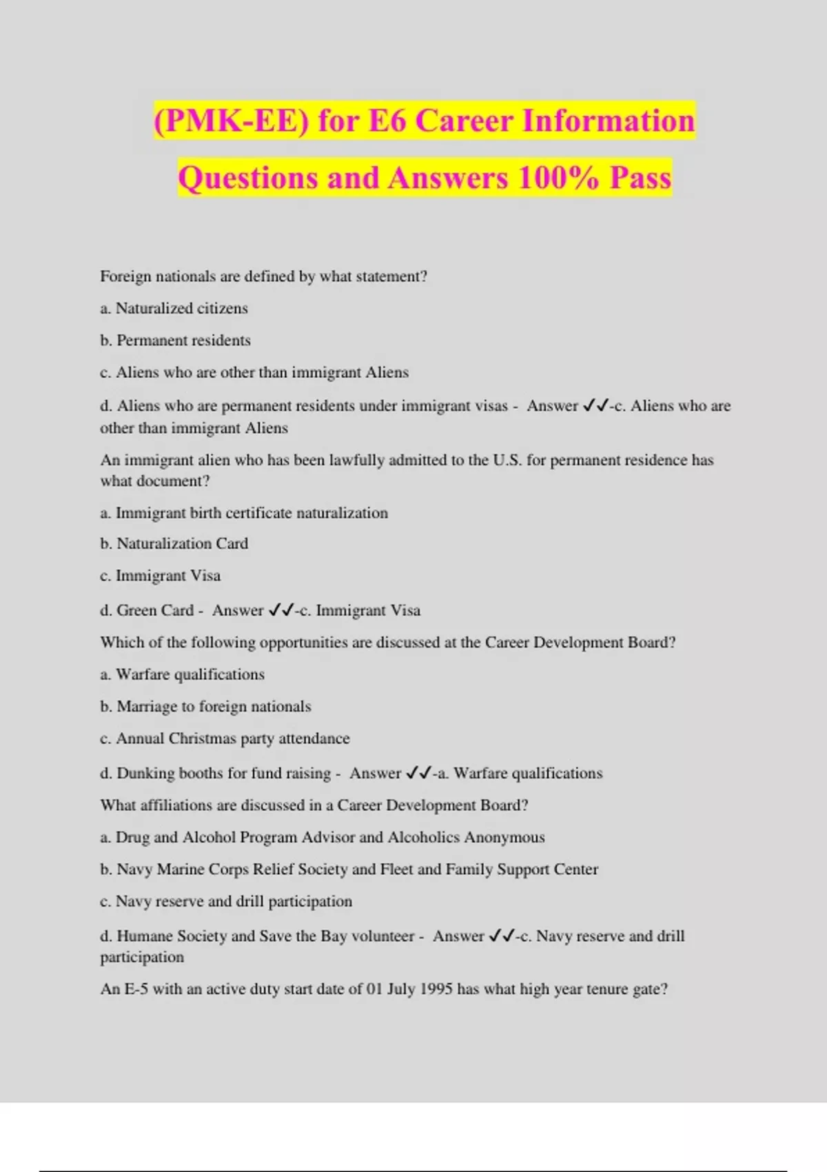 (PMK-EE) for E6 Career Information Questions and Answers 100% Pass