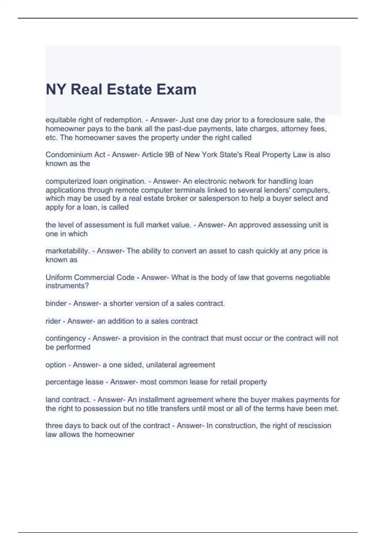 NY Real Estate Exam Questions and Answers | Graded A