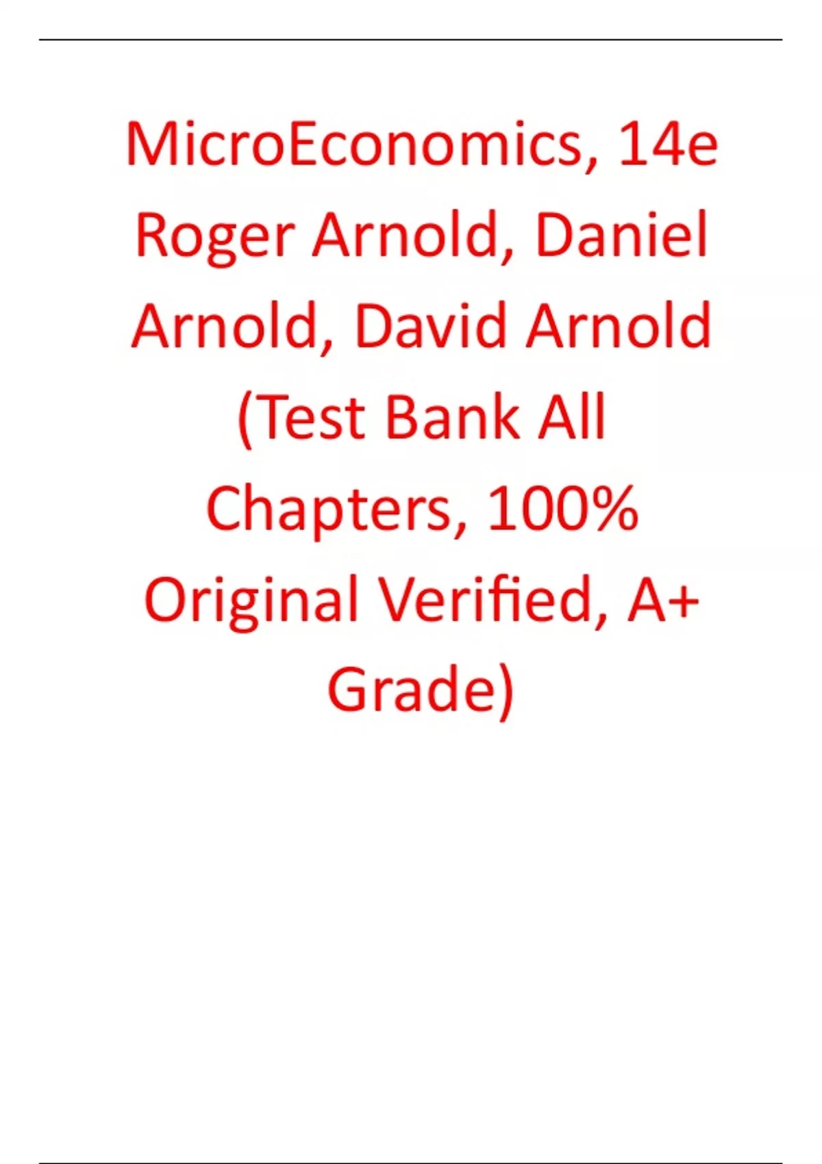 Test Bank For MicroEconomics 14th Edition By Roger Arnold, Daniel Arnold, David Arnold (All Chapters, 100% Original Verified, A+ Grade)