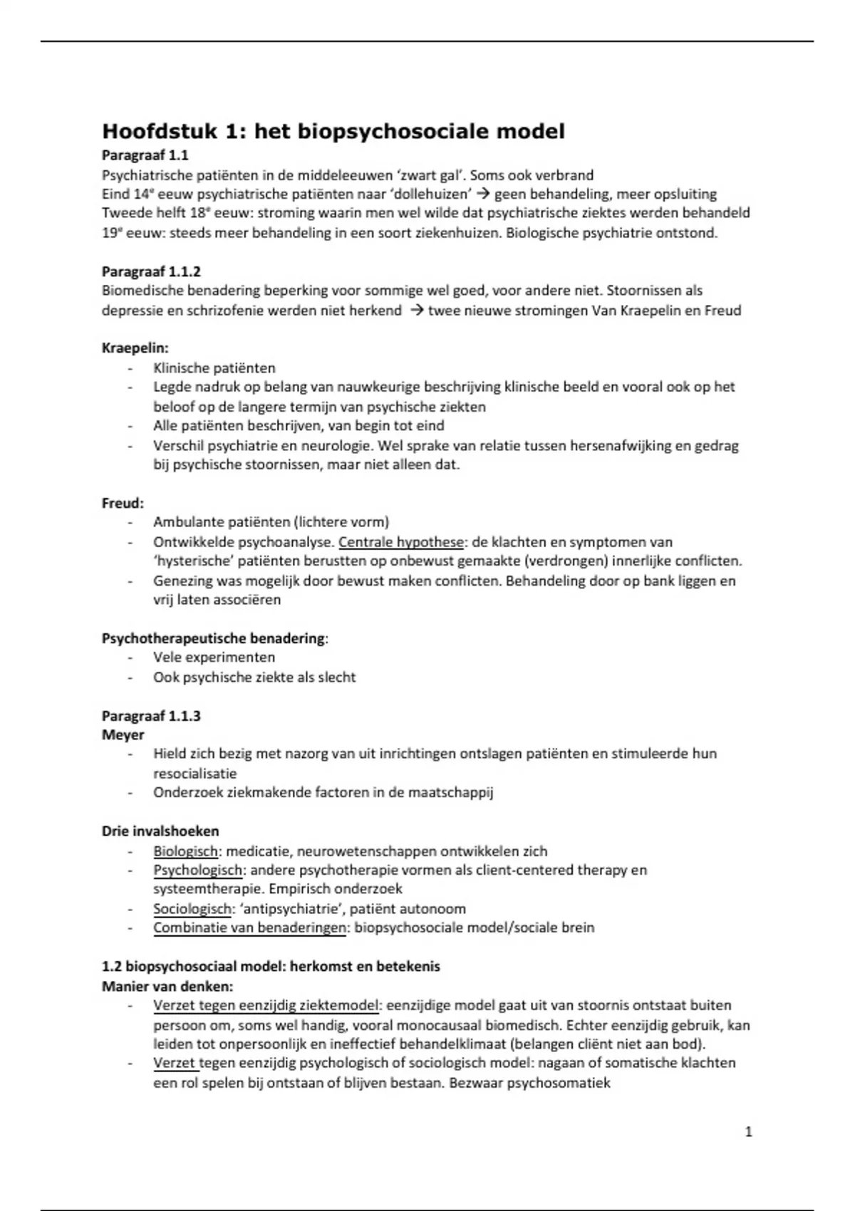 Hoofdstuk 1: het biopsychosociale model