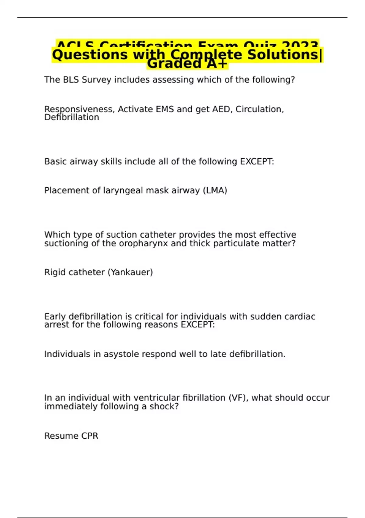 ACLS Certification Exam Quiz 2023 Questions with Complete Solutions| Graded A+