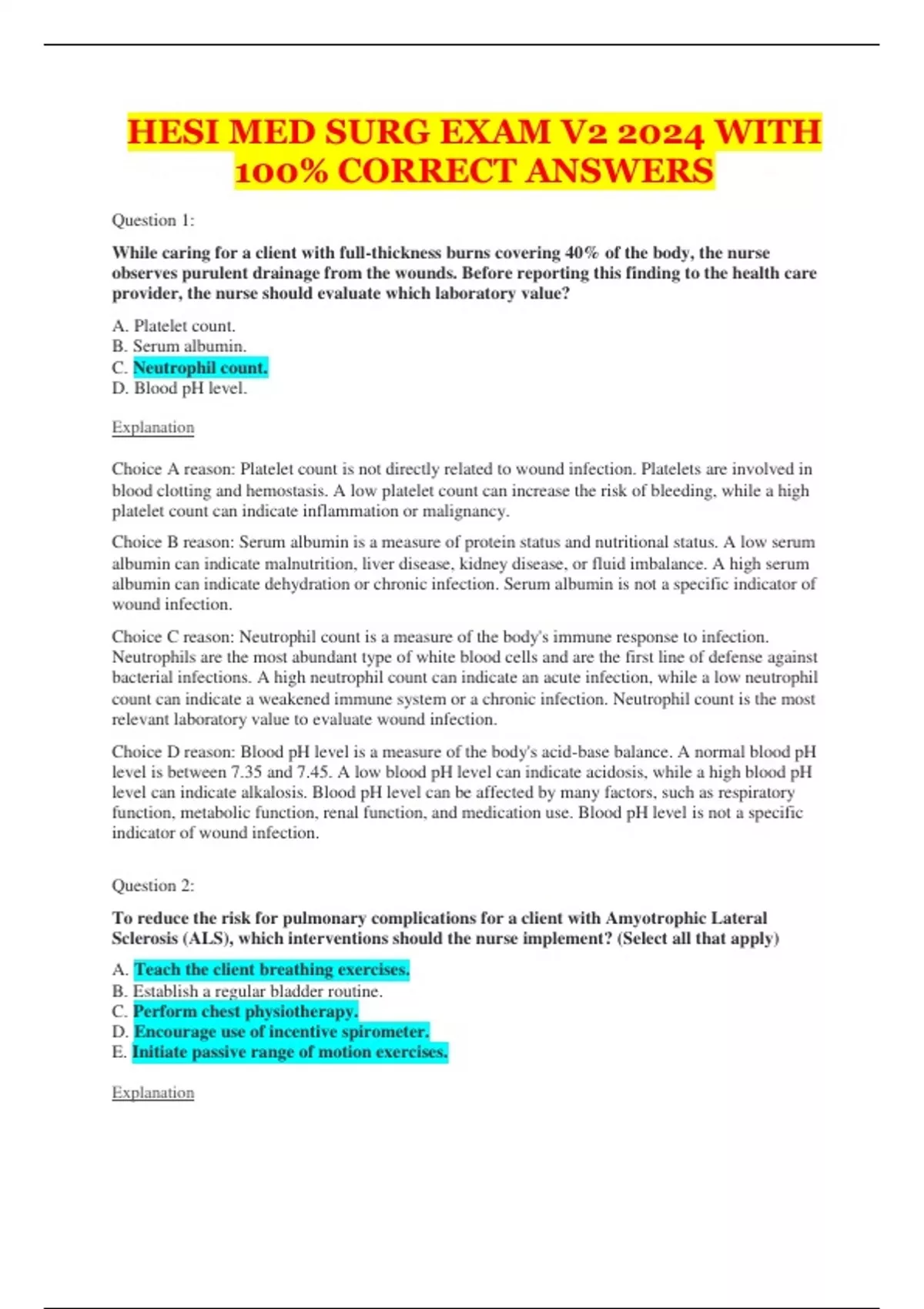 HESI MED SURG EXAM V2 2024 WITH 100% CORRECT ANSWERS