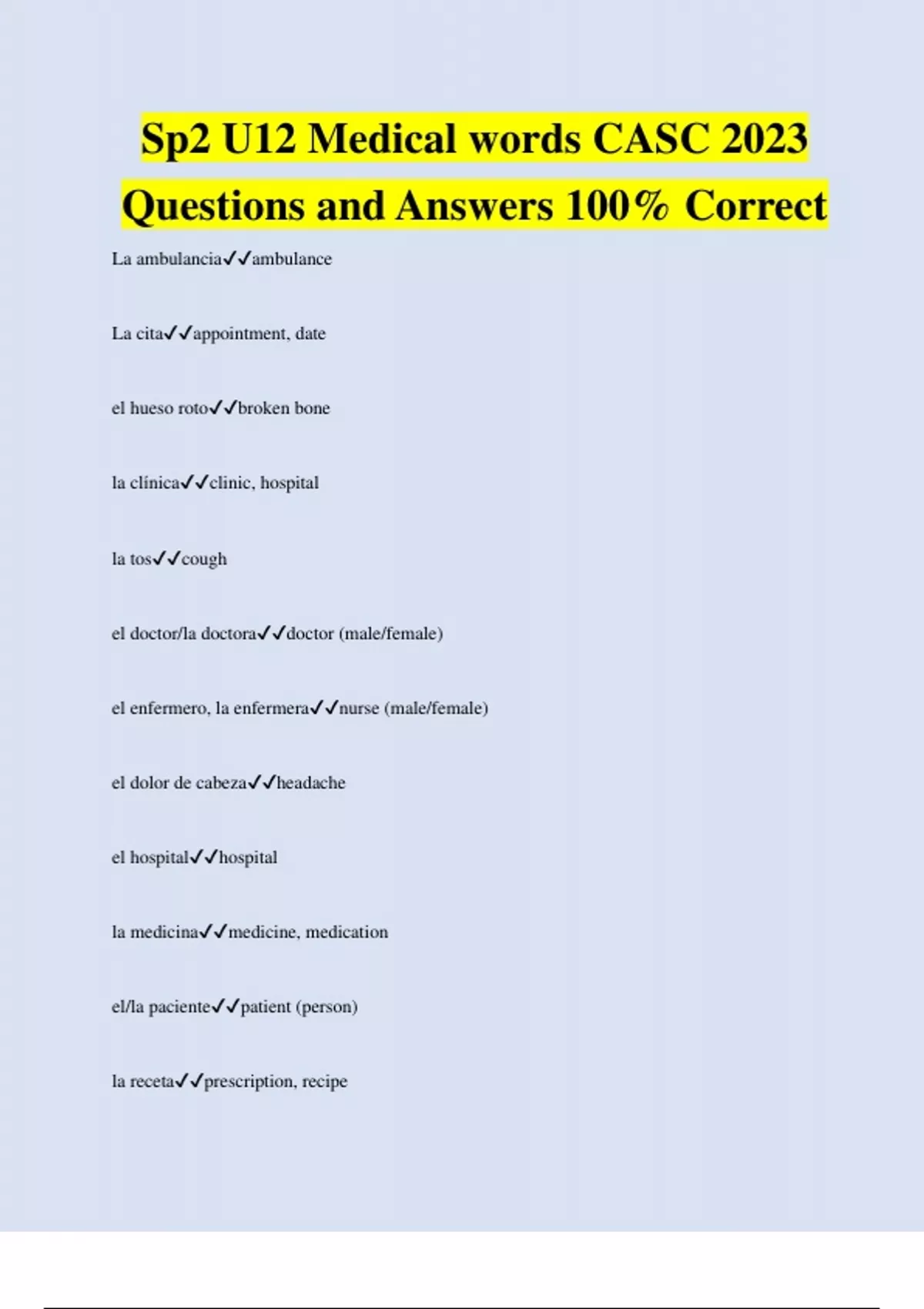 Sp2 U12 Medical words CASC 2023 Questions and Answers 100% Correct