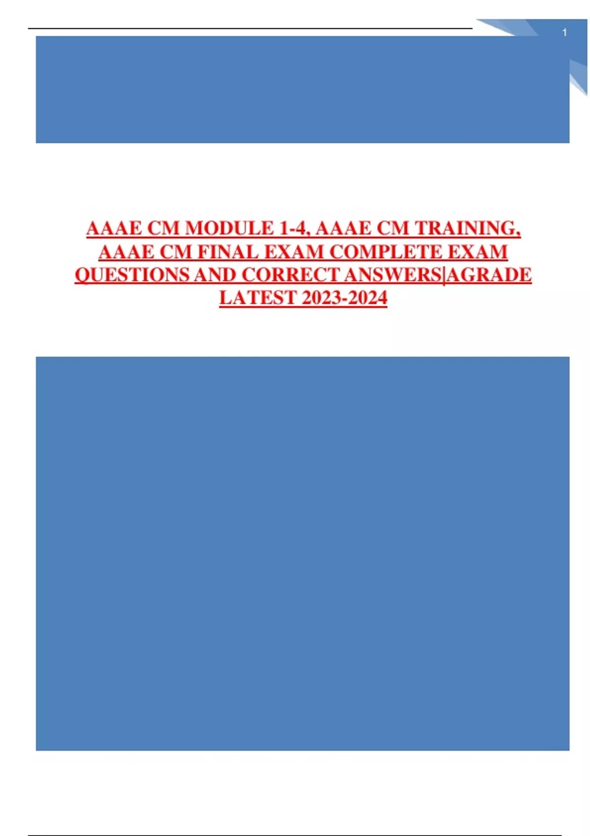 AAAE CM MODULE 1-4, AAAE CM TRAINING,AAAE CM FINAL EXAM COMPLETE EXAMQUESTIONS AND CORRECT ANSWERS|AGRADELATEST /AAAE CM MODULE 1-4, AAAE CM TRAINING,AAAE CM FINAL EXAM COMPLETE EXAMQUESTIONS AND CORRECT ANSWERS|AGRADELATEST /AAAE CM MODULE 1-4, AAAE CM TRAINING,AAAE CM FINAL EXAM COMPLETE EXAMQUESTIONS AND CORRECT ANSWERS|AGRADELATEST