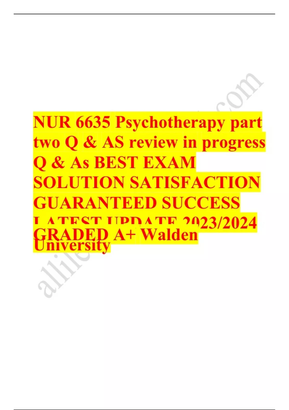 Nurs 6635 psychotherapy part two EXAM QUESTIONS & ANSWERS/ LATEST UPDATE / RATED A+