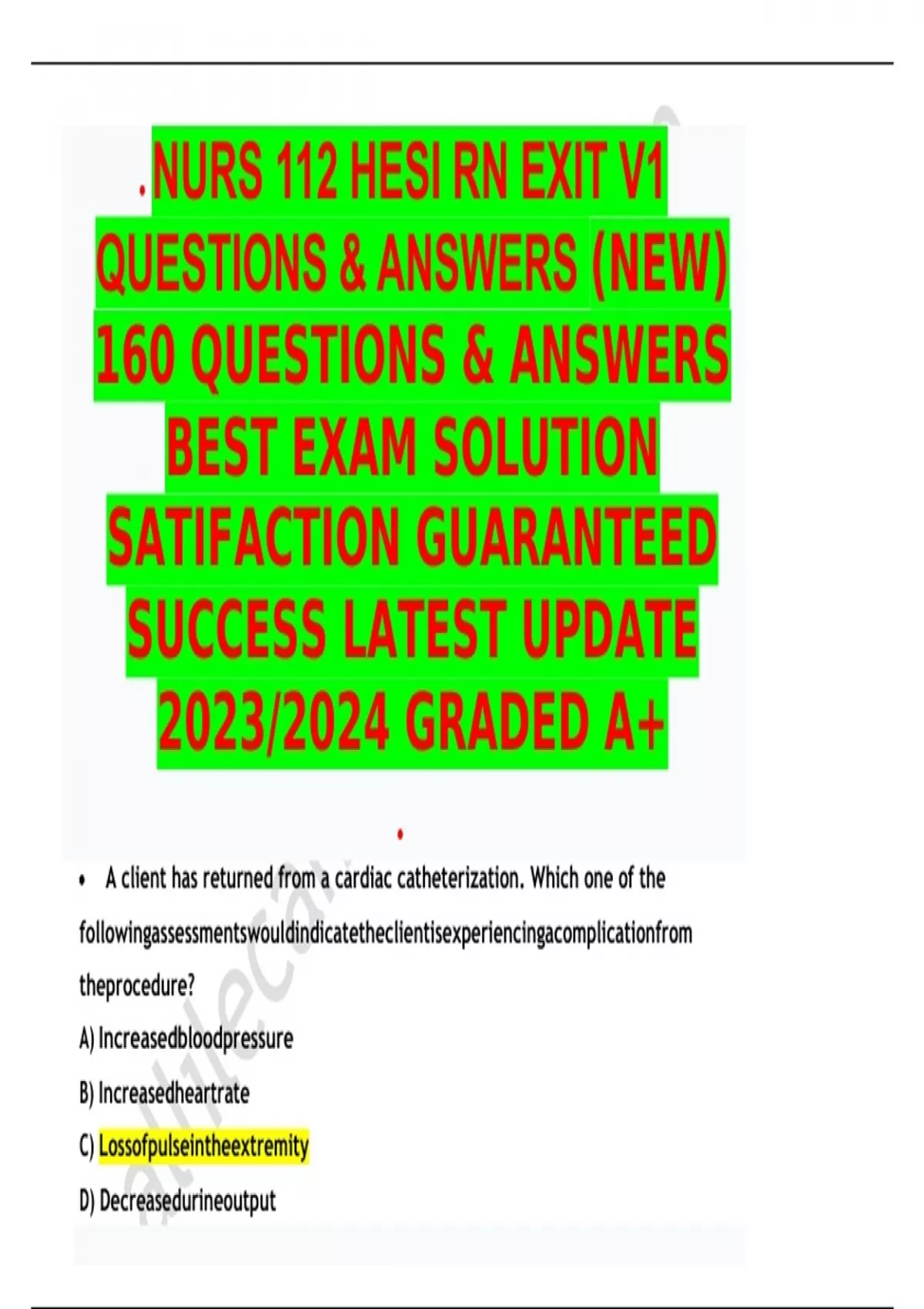 Hesi rn EXAM QUESTIONS & ANSWERS/ LATEST UPDATE / RATED A+