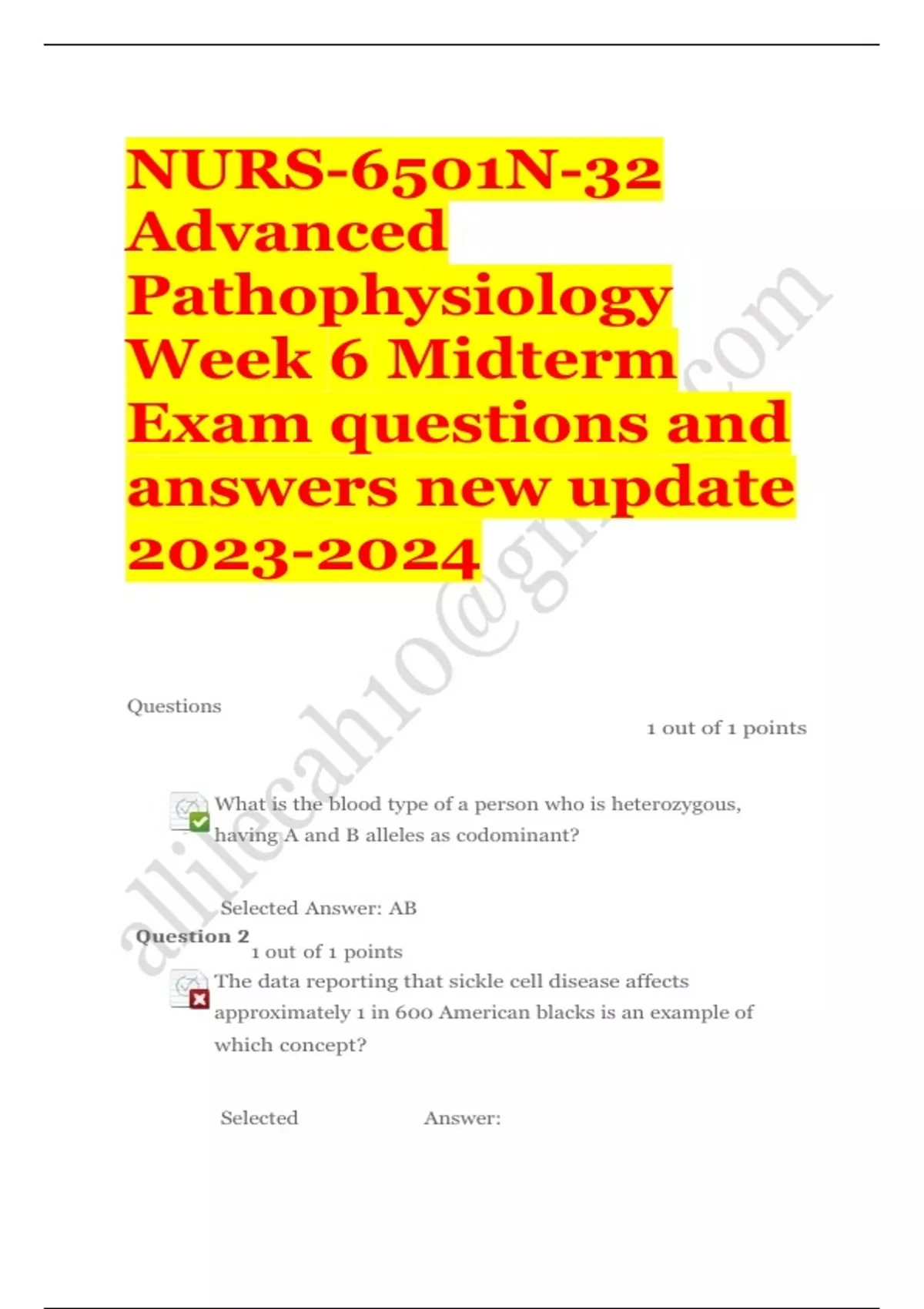 Nurs 6501n 32 advanced pathophysiology week 6 midterm EXAM QUESTIONS & ANSWERS/ LATEST UPDATE / RATED A+