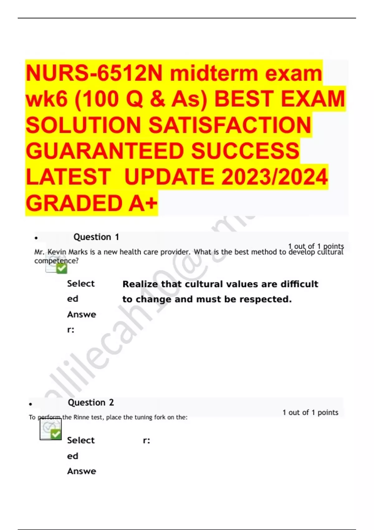 Nurs 6512n midterm EXAM QUESTIONS & ANSWERS/ LATEST UPDATE / RATED A+