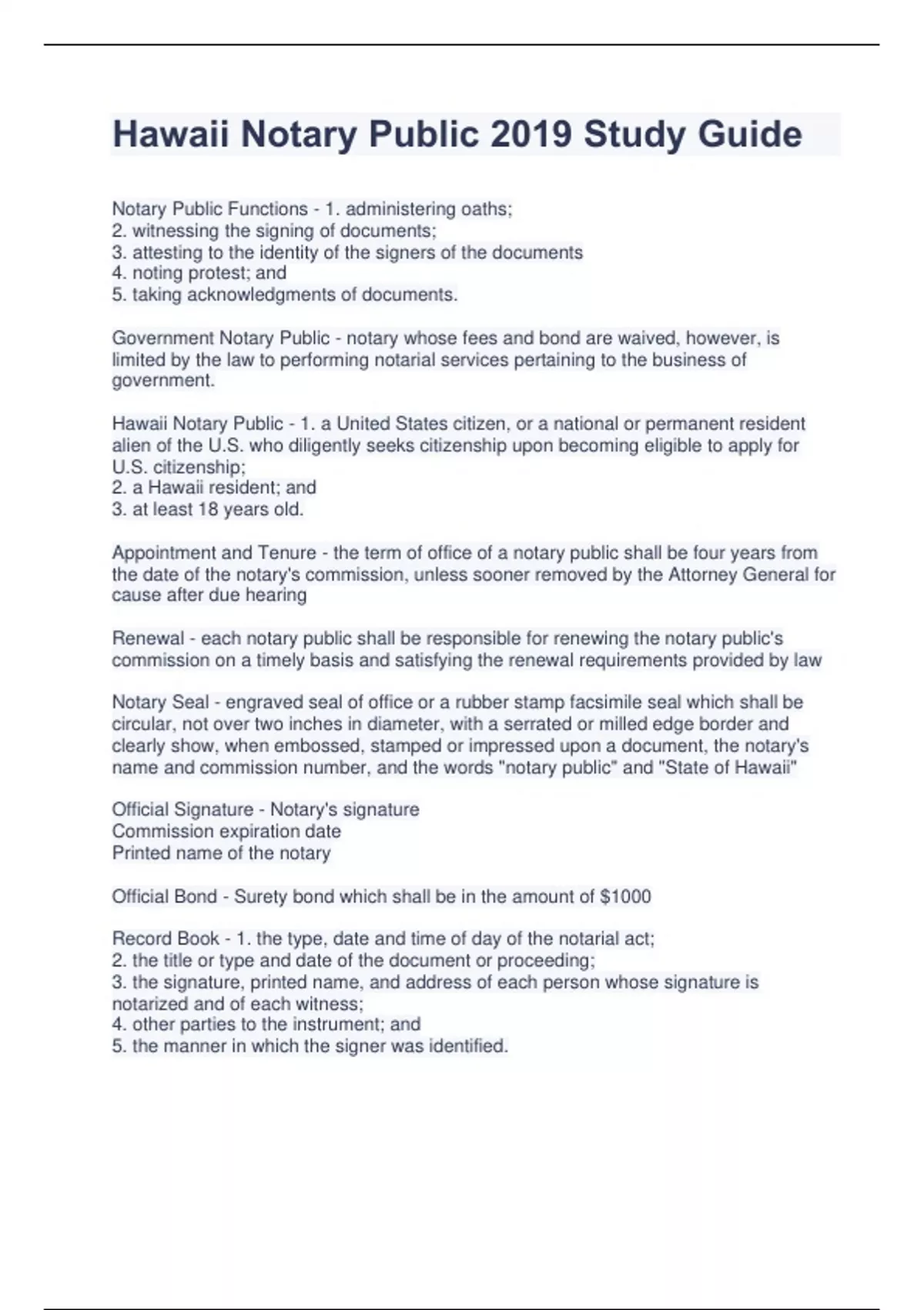 hawaii notary public 2019 study guide