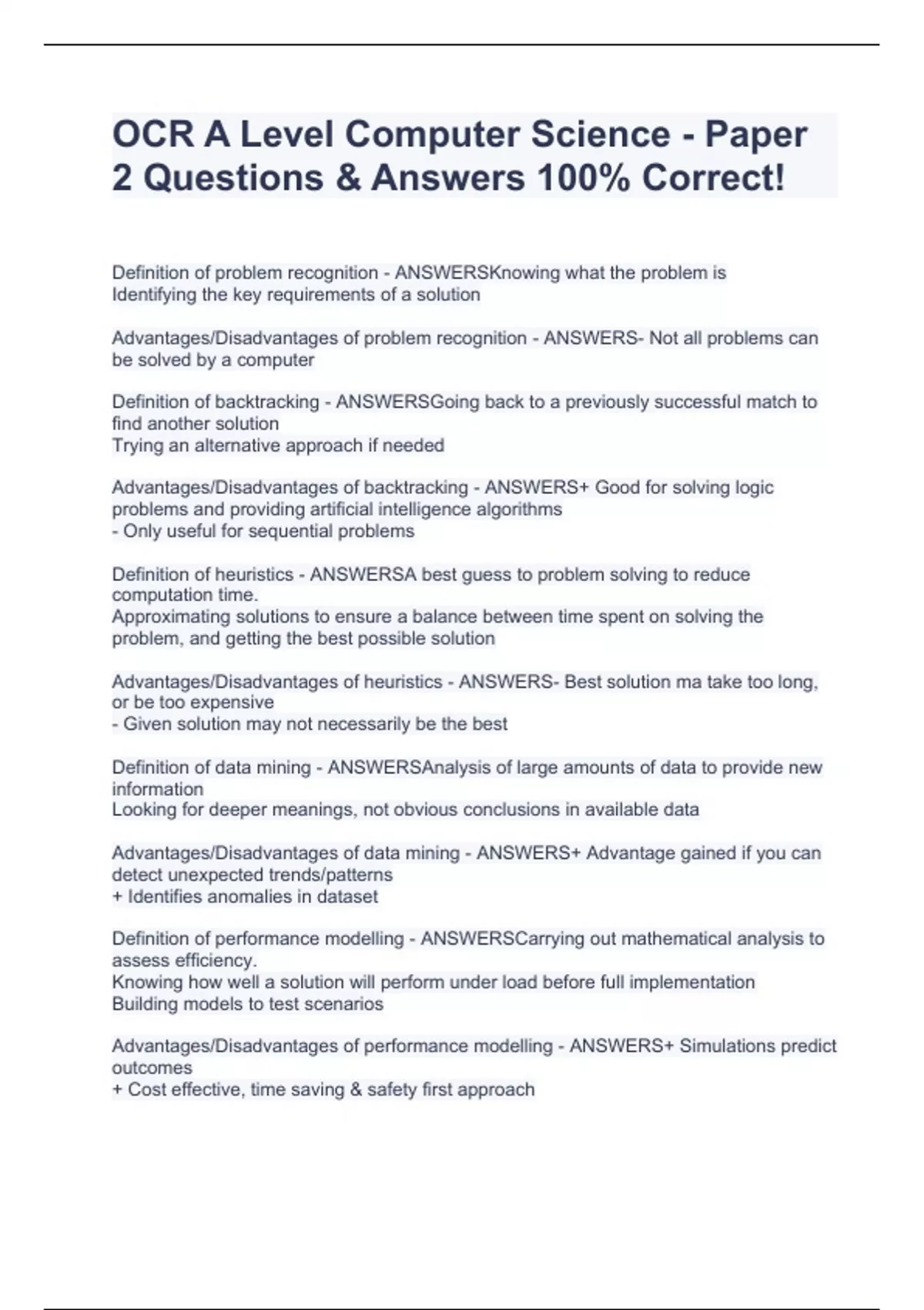 OCR A Level Computer Science - Paper 2 Questions & Answers 100% Correct!