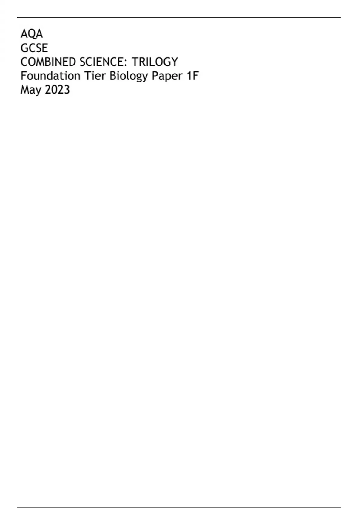 AQA GCSE COMBINED SCIENCE: TRILOGY Foundation Tier Biology Paper 1F May 2023
