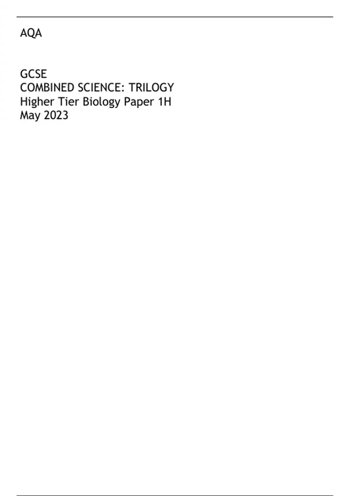 Higher Tier Biology Paper 1H