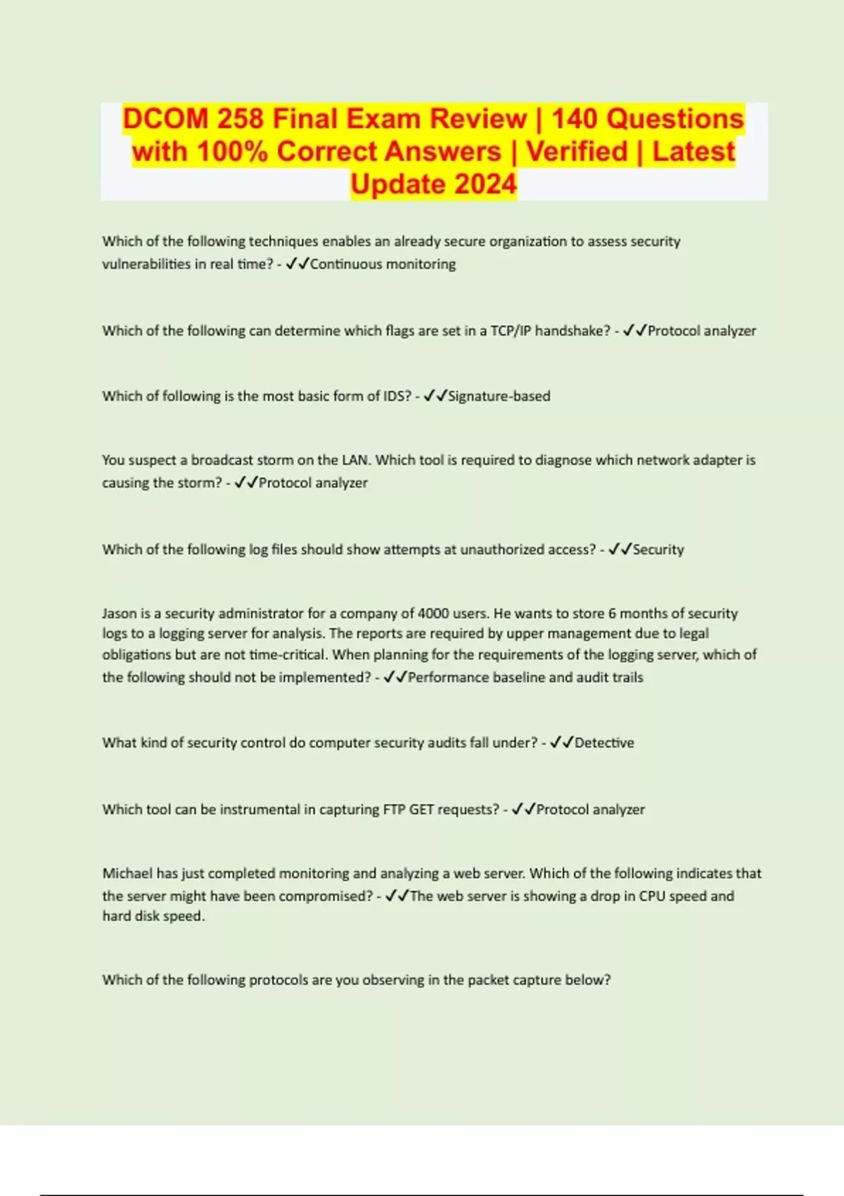 dcom 258 final exam review 140 questions with 10