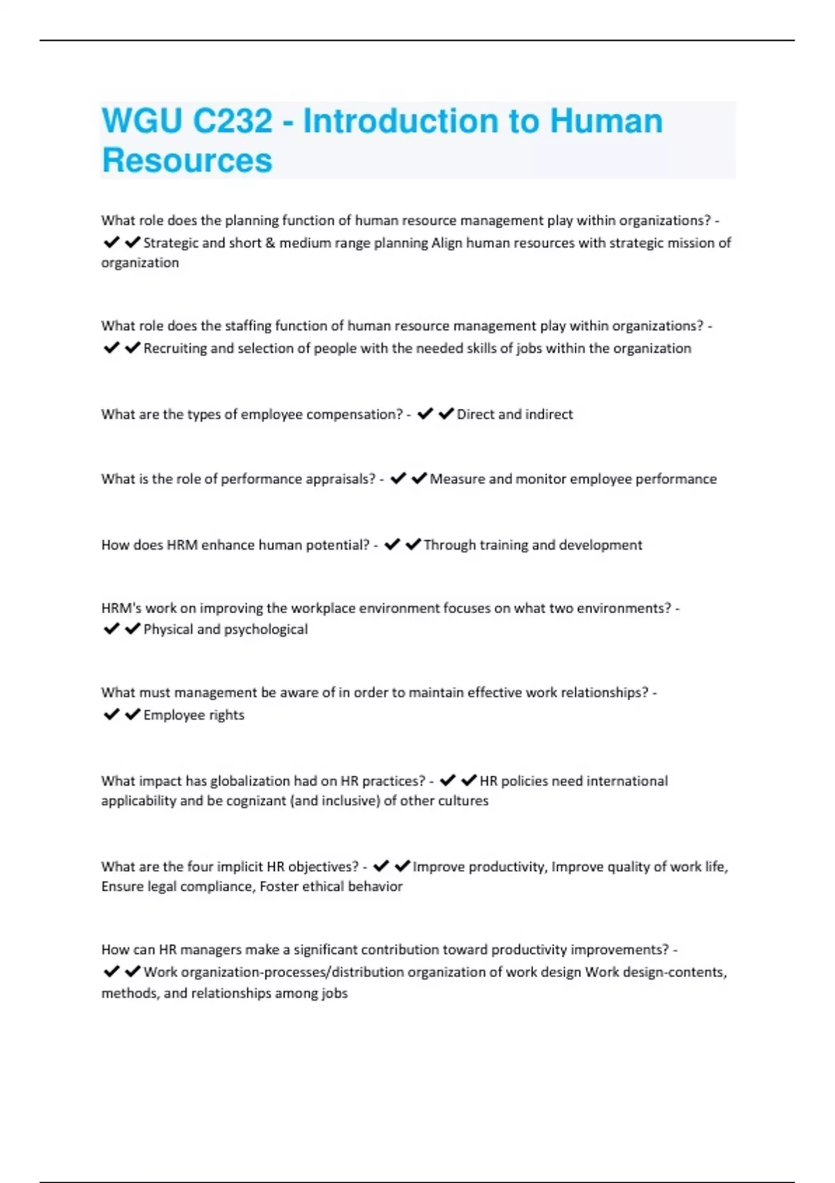 WGU C232 - Introduction to Human Resources Exam Questions And Correct Answers |100% Guaranteed Success |Verified