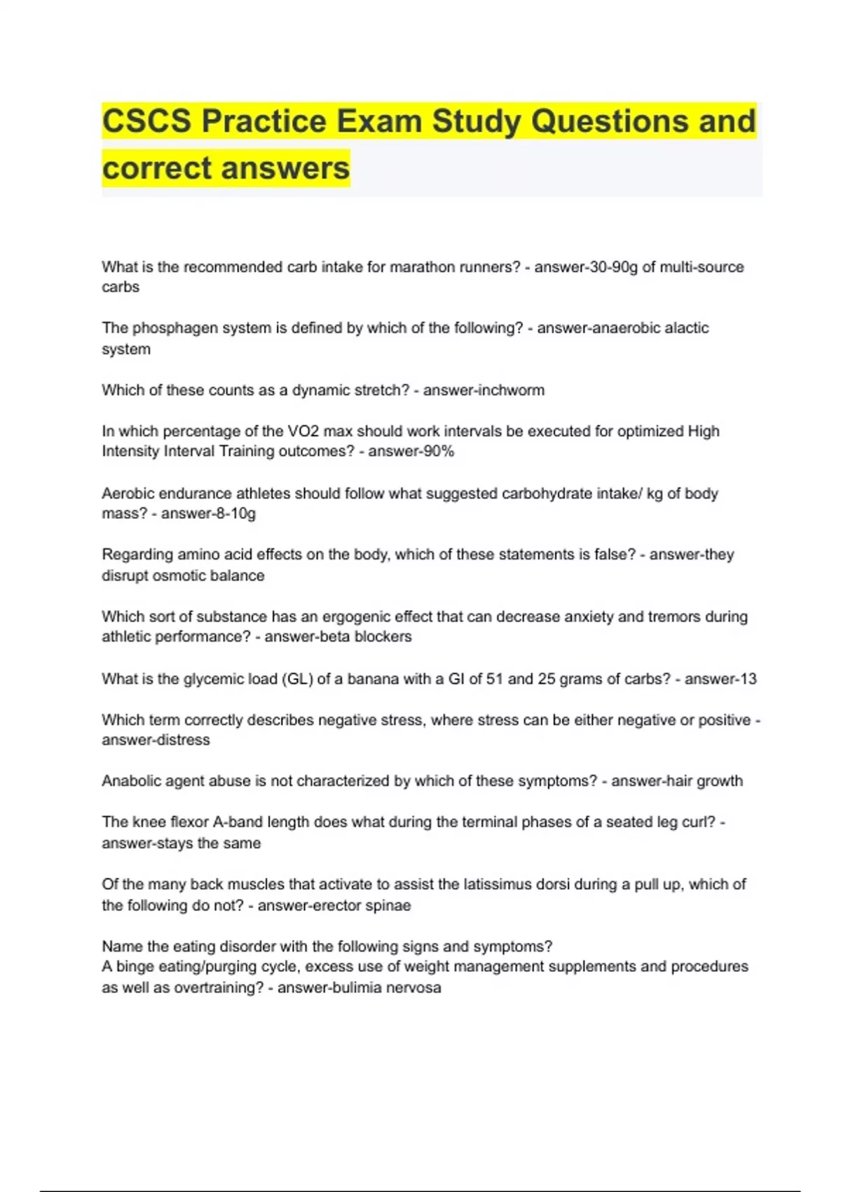 CSCS Practice Exam Study Questions and correct answers