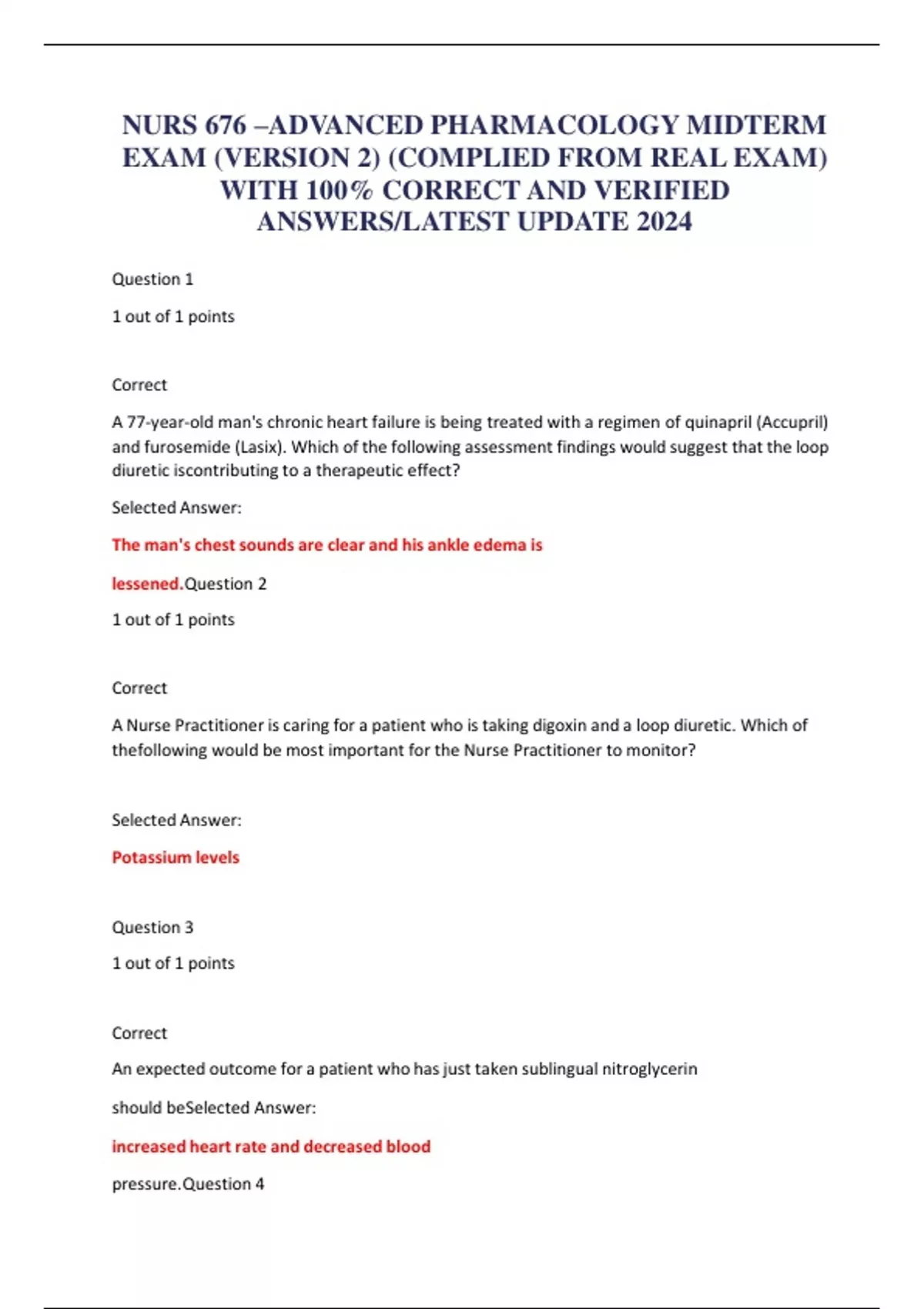 NURS 676 –ADVANCED PHARMACOLOGY MIDTERM EXAM (VERSION 2) (COMPLIED FROM REAL EXAM) WITH 100% CORRECT AND VERIFIED ANSWERS/LATEST UPDATE 2024