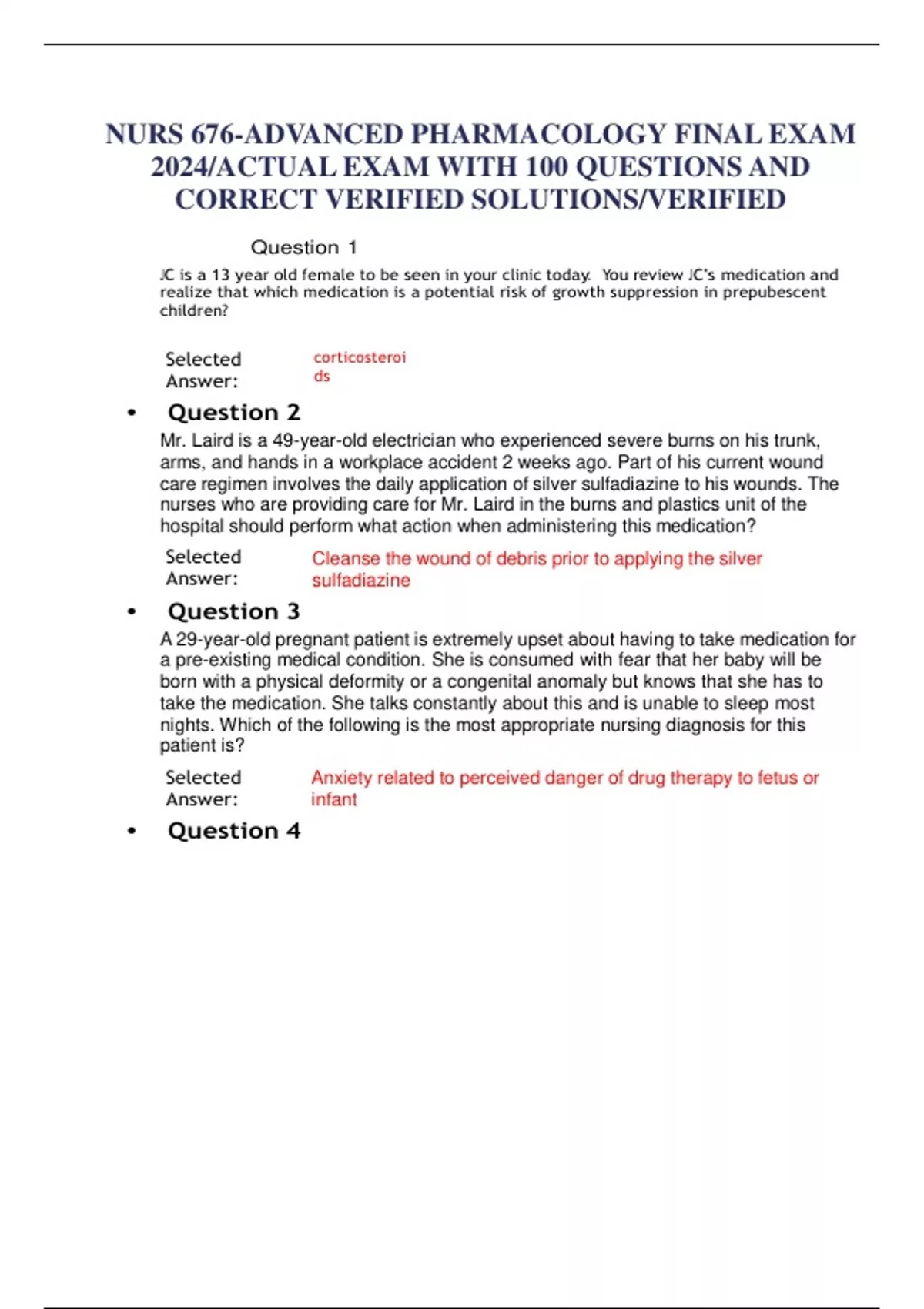 NURS 676-ADVANCED PHARMACOLOGY FINAL EXAM 2024/ACTUAL EXAM WITH 100 QUESTIONS AND CORRECT VERIFIED SOLUTIONS/VERIFIED