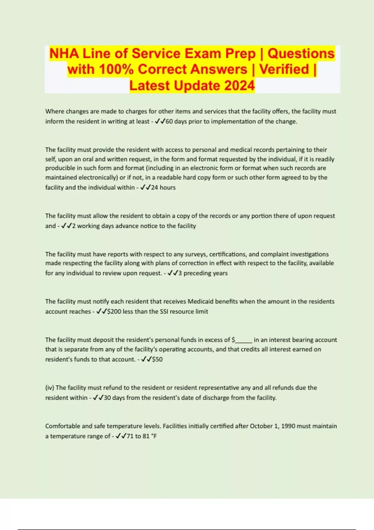 NHA Line of Service Exam Prep | Questions with 100% Correct Answers | Verified | Latest Update 2024