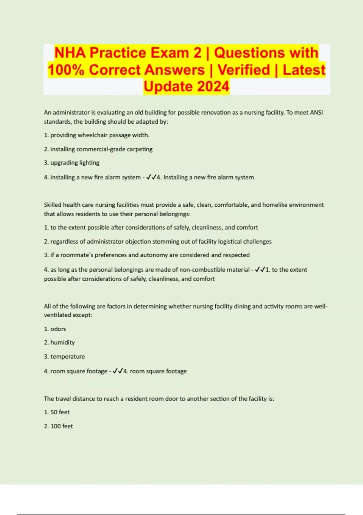 NHA Practice Exam 2 | Questions with 100% Correct Answers | Verified | Latest Update 2024