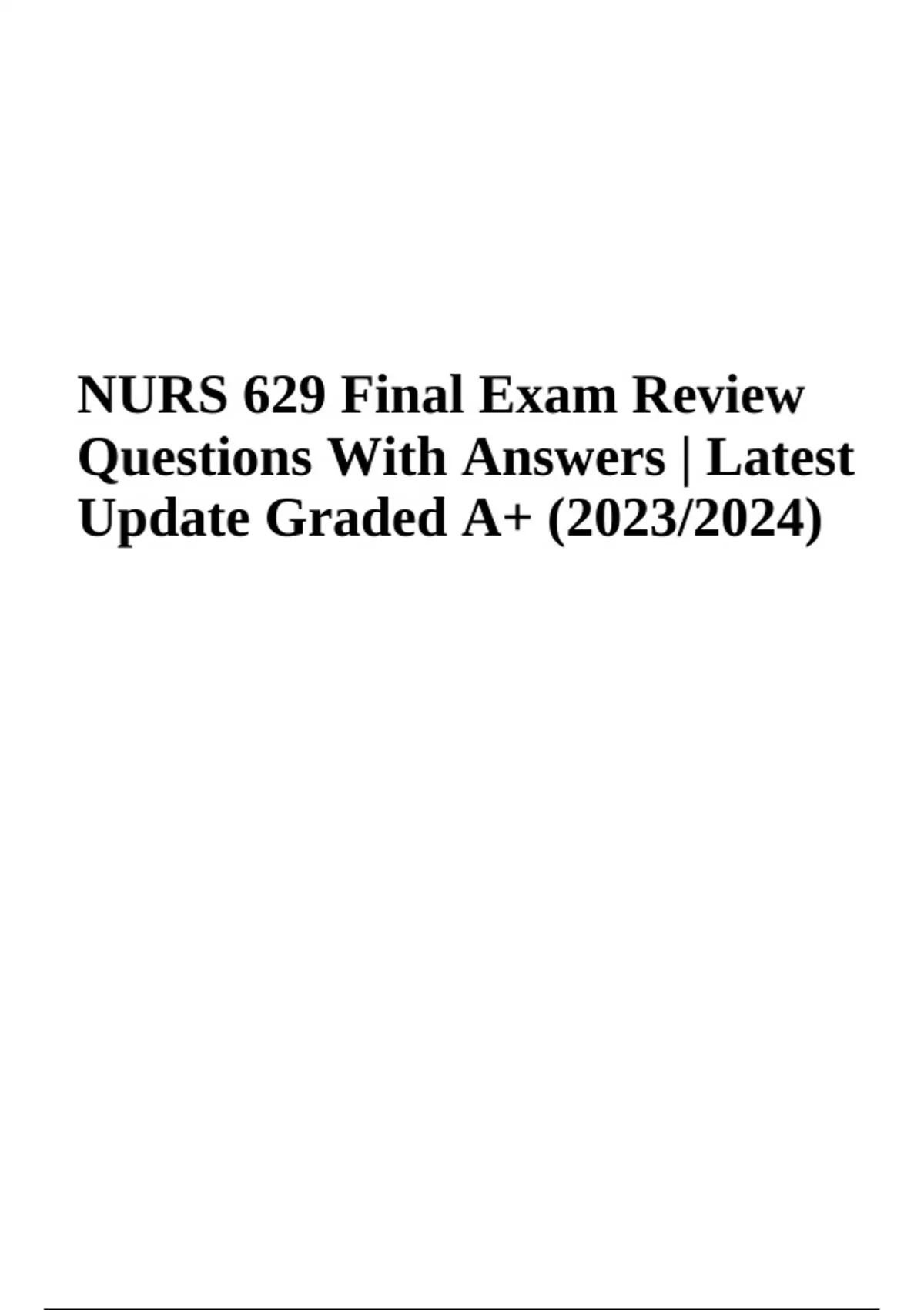 NURS 629 Final Exam Questions With Correct Answers Latest Update 2024 (Graded A+)