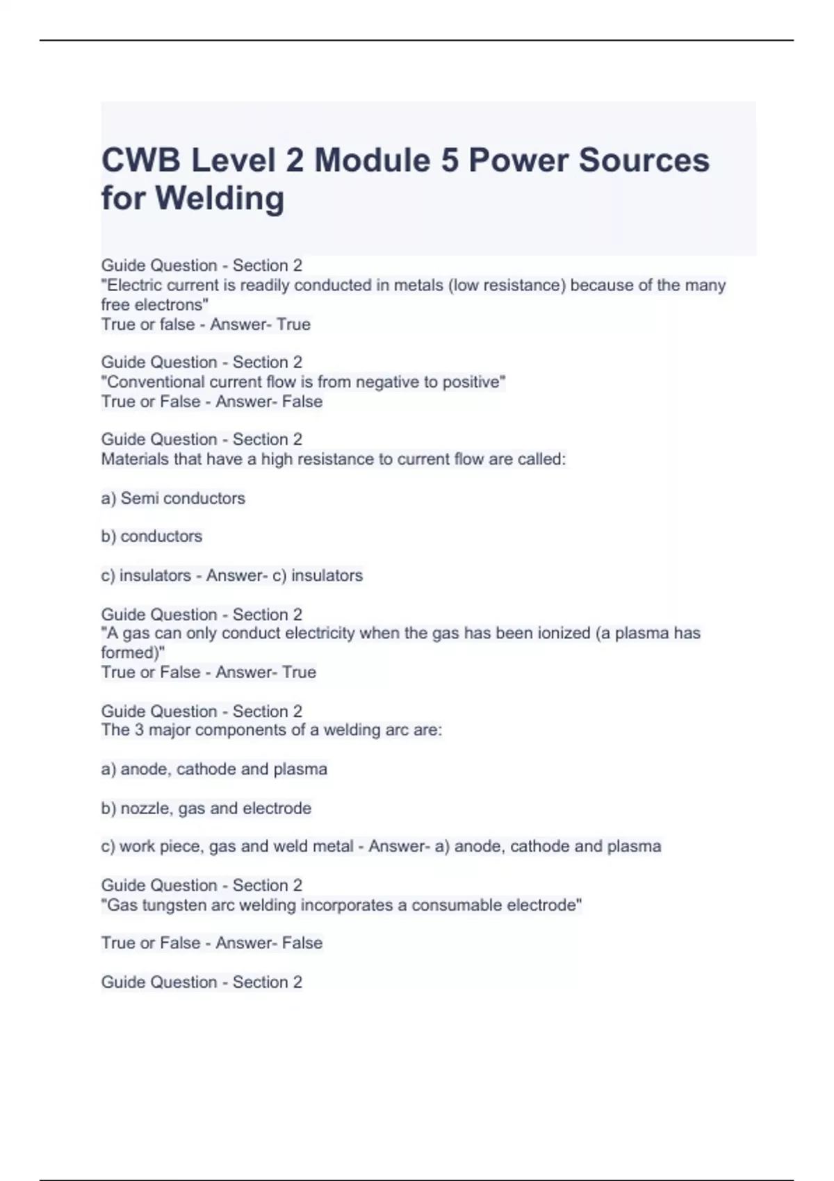 CWB Level 2 Module 5 Power Sources for Welding Exam
