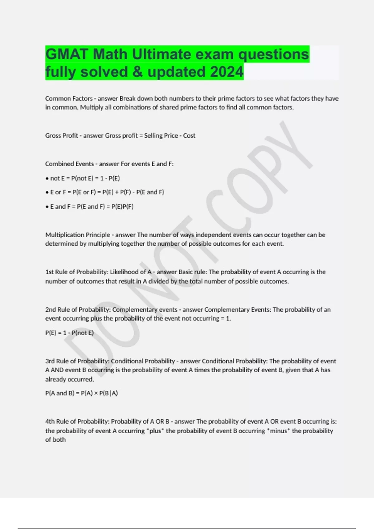GMAT Math Ultimate exam questions fully solved & updated 2024.