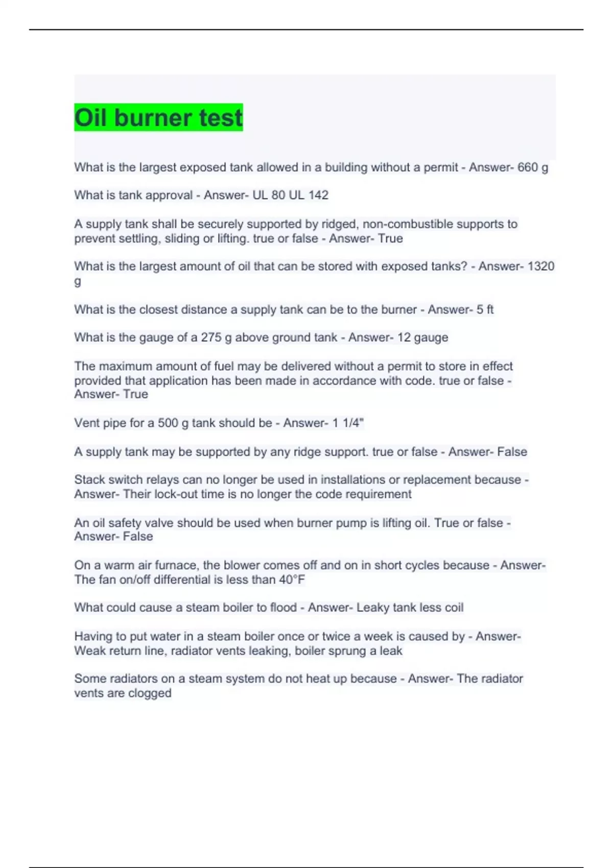Exam of 11 pages for the course Massachusetts Oil burner at Massachusetts Oil burner (Oil burner test)