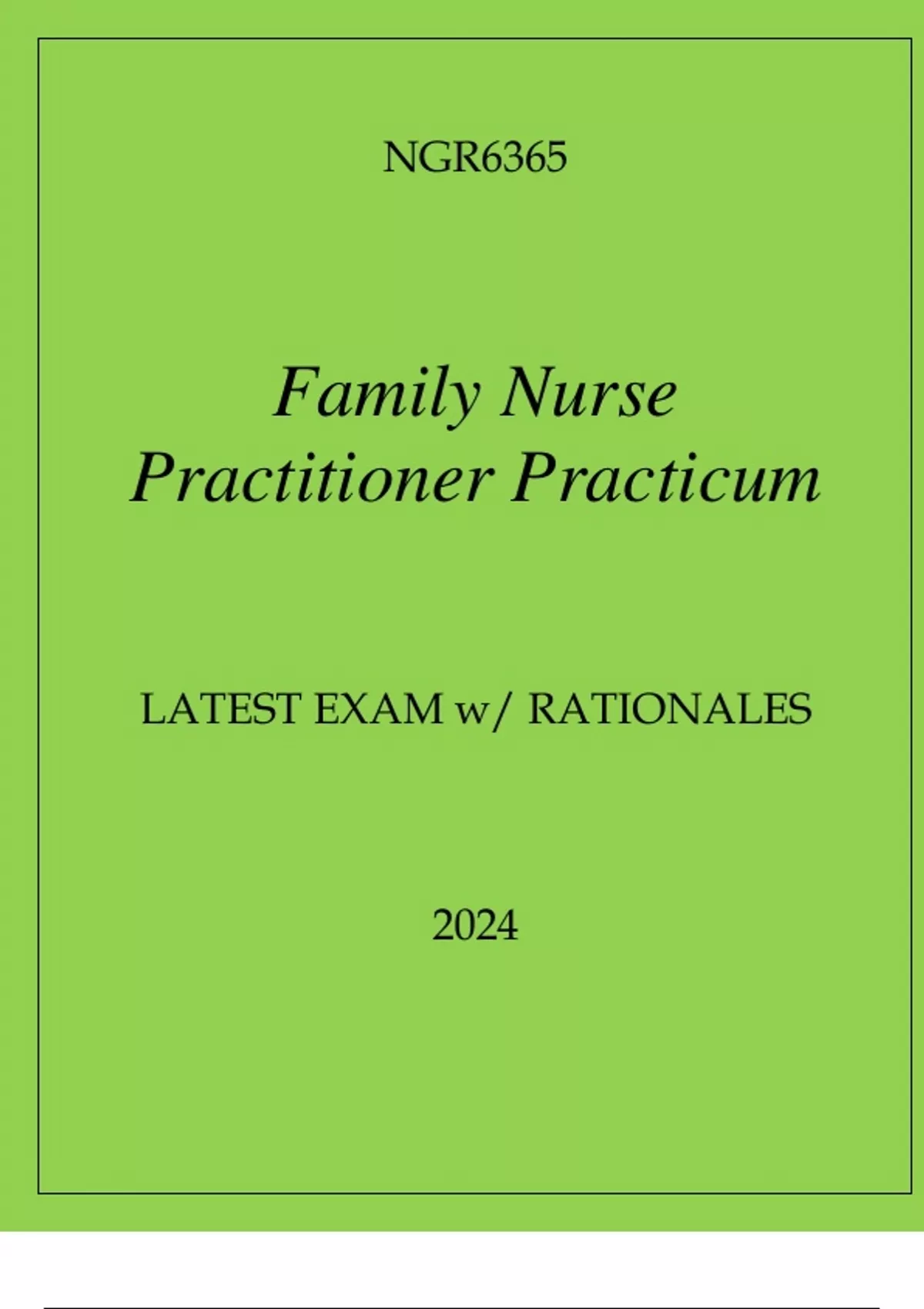 NGR6365 FAMILY NURSE PRACTITIONER PRACTICUM LATEST EXAM WITH RATIONALES
