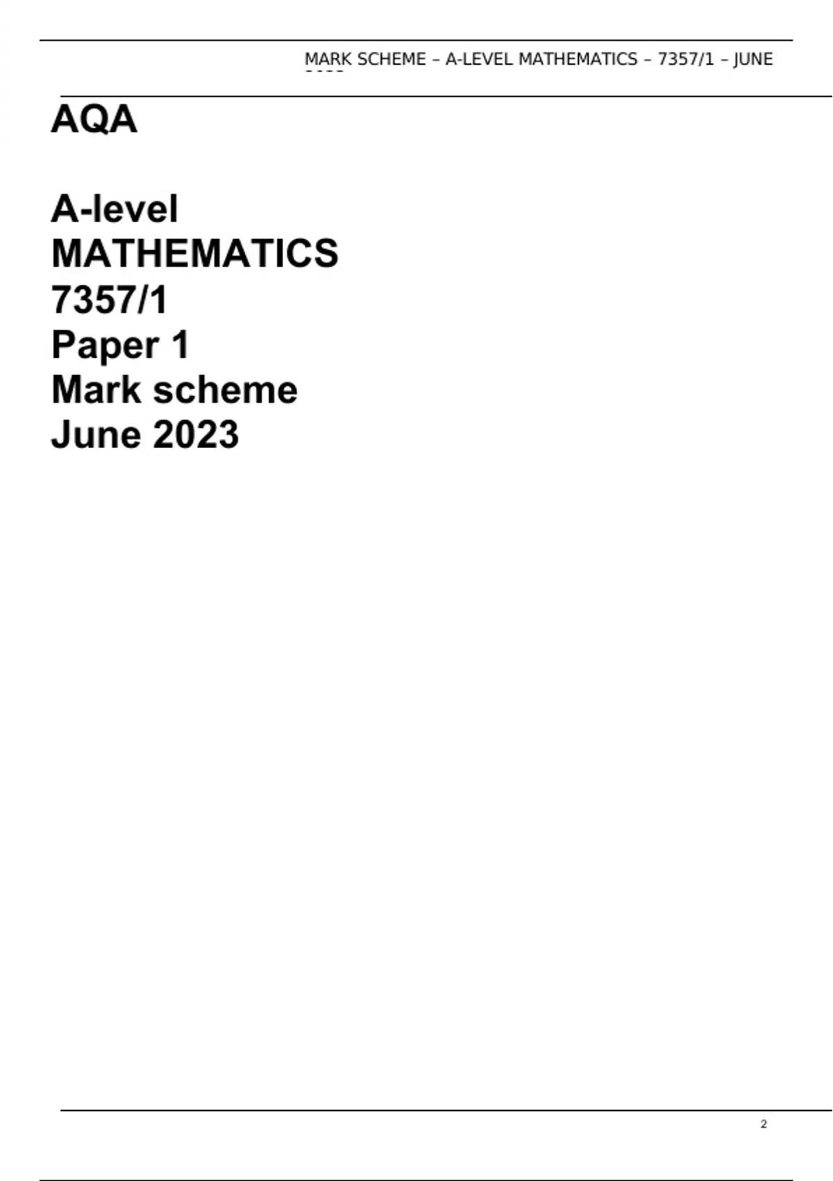 AQA A-level MATHEMATICS 7357/1 Paper 1 Mark scheme June 2023