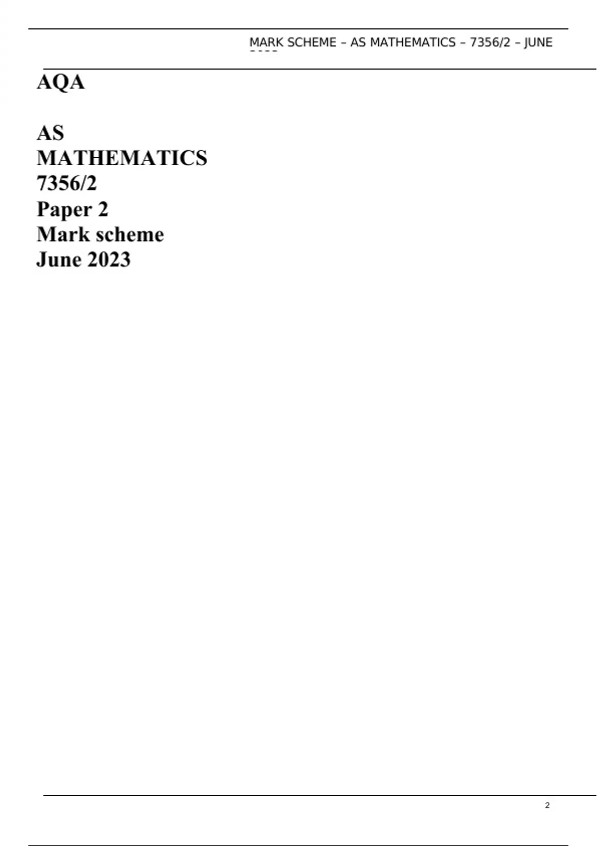 AQA AS MATHEMATICS 7356/2 Paper 2 Mark scheme June 2023