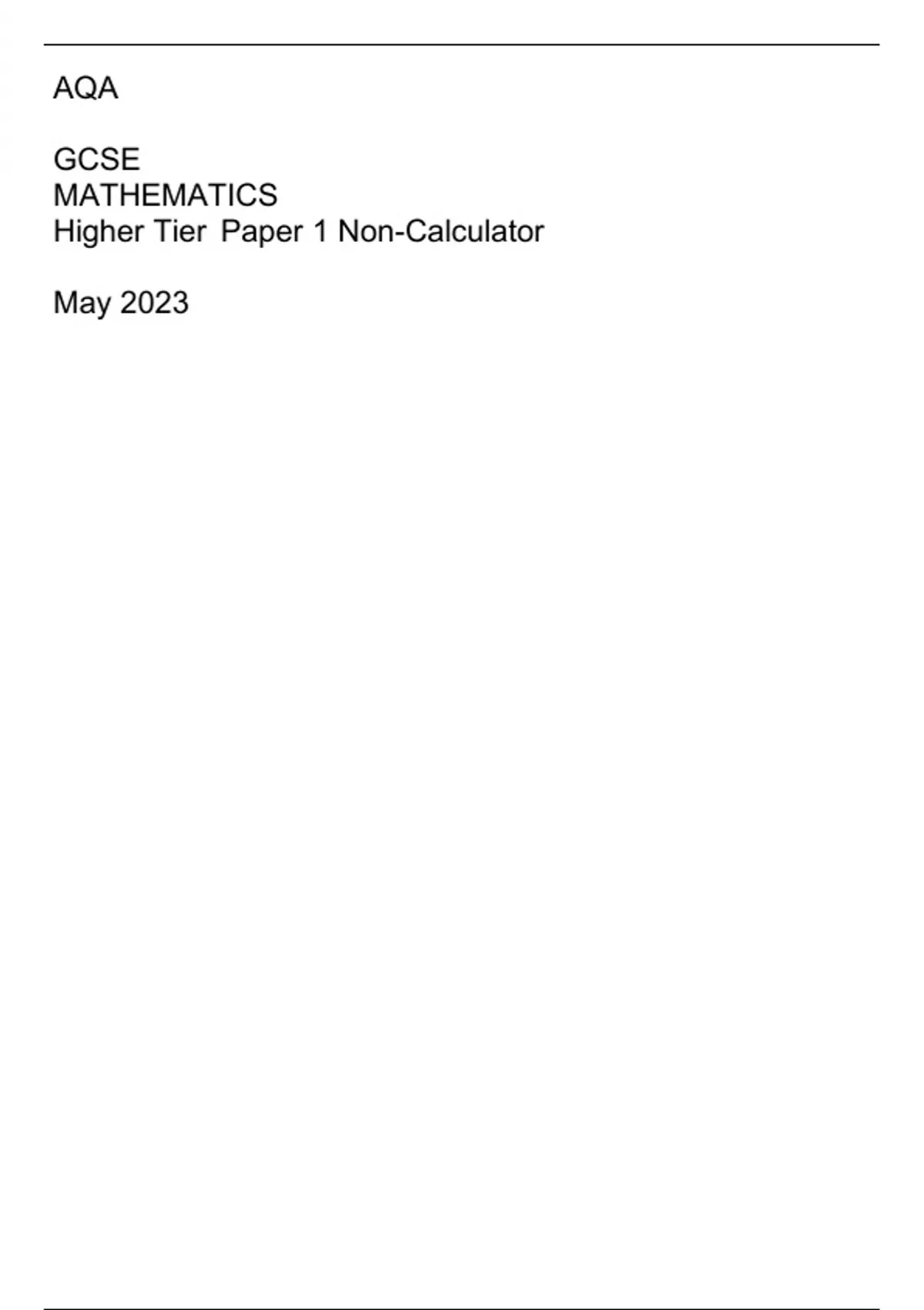 AQA GCSE MATHEMATICS Higher Tier Paper 1 Non-Calculator May 2023