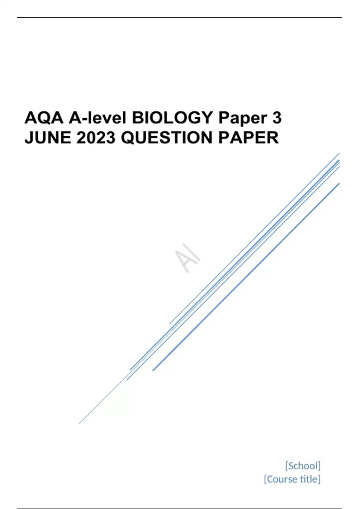 AQA A level BIOLOGY Paper 3 JUNE 2023 QUESTION PAPER