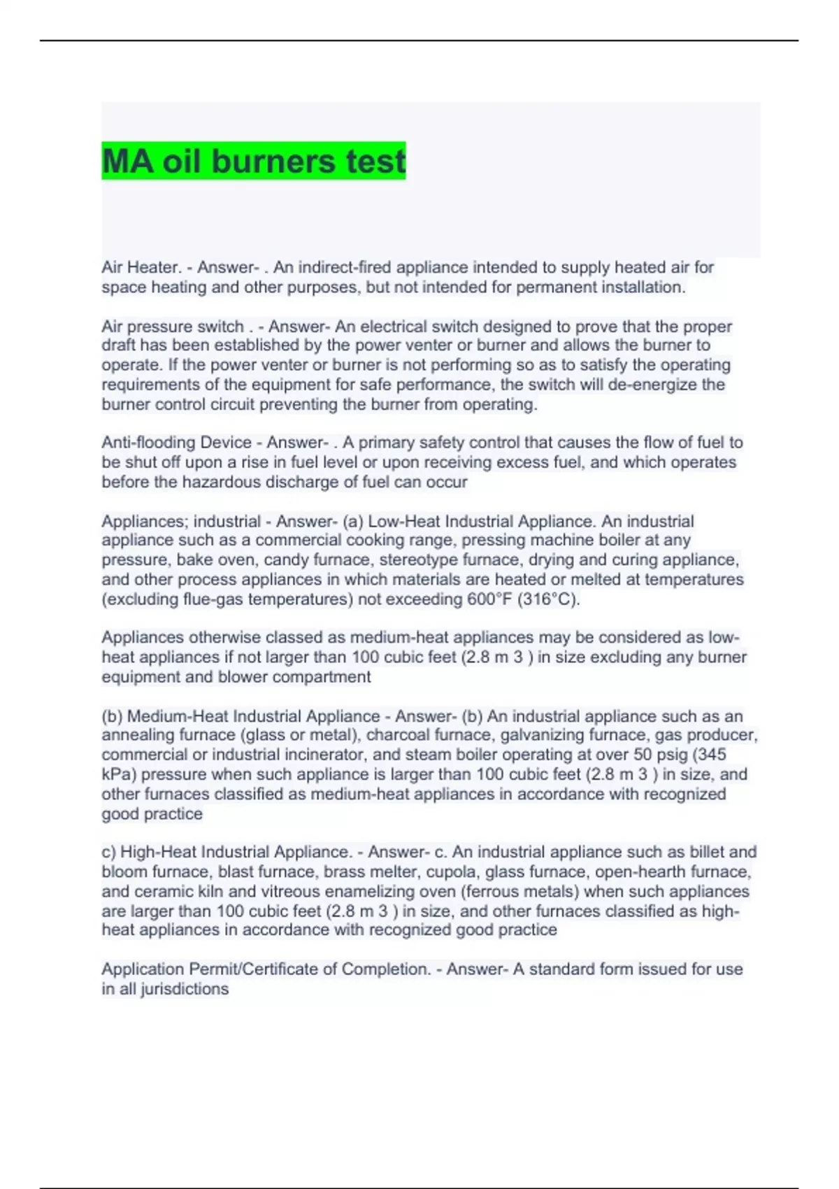 MA oil burners test 100% solved