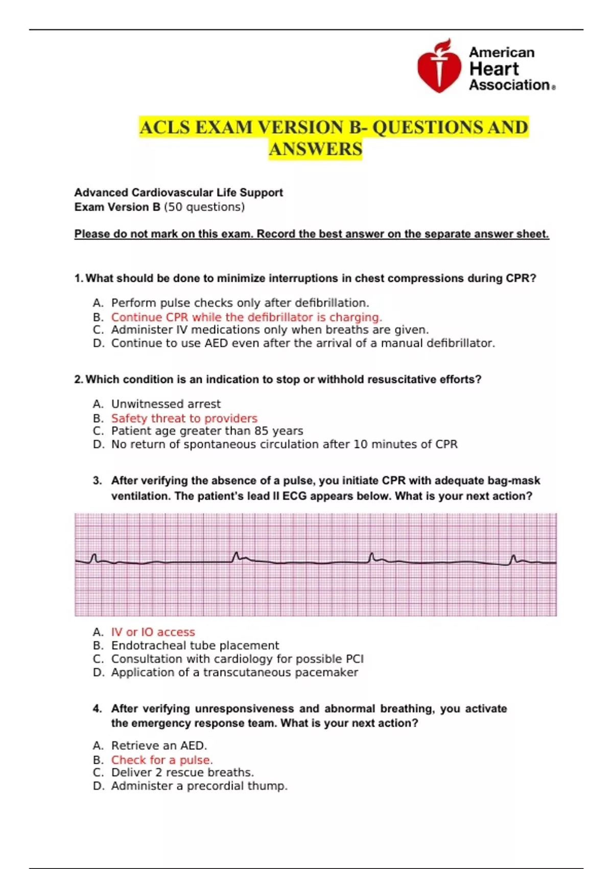 ACLS Exam Version B /Latest 2022:2023(50 Questions and Answers)