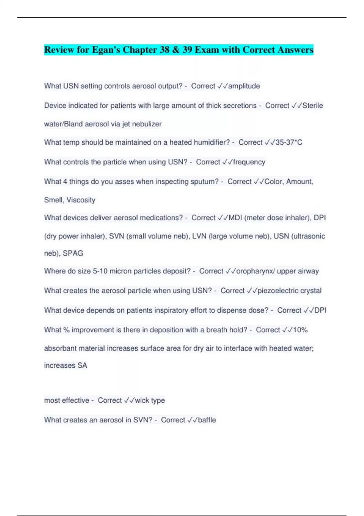 Review for Egan's Chapter 38 & 39 Exam with Correct Answers