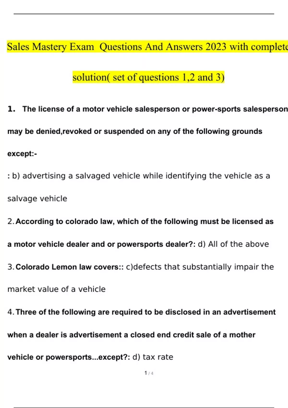 Sales Mastery Exam 2023 with complete solution( set of questions 1,2 and 3)