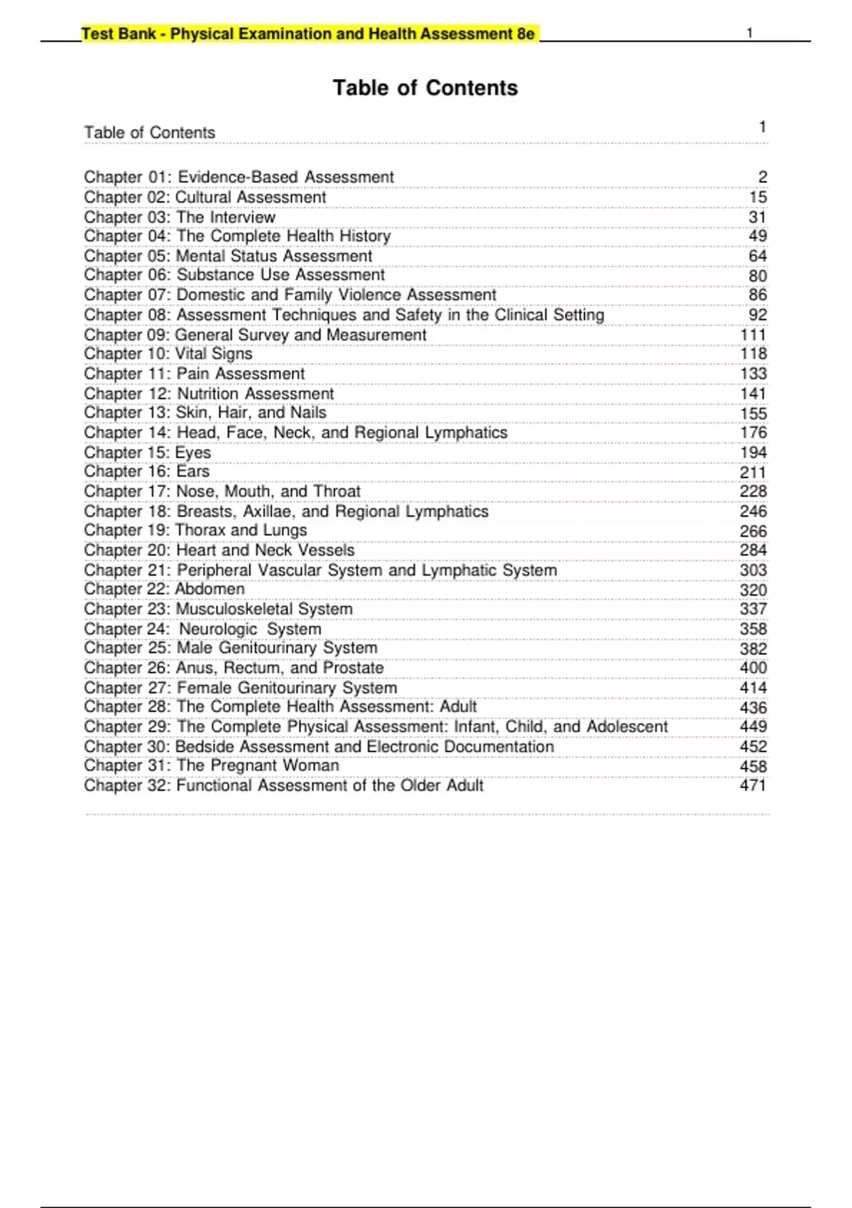 Test Bank - Physical Examination and Health Assessment 8e (by Jarvis)