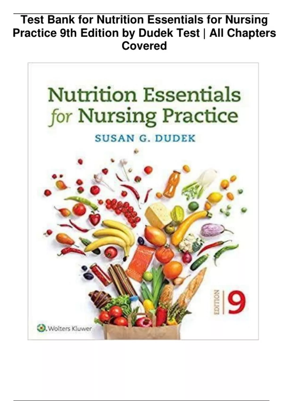 Test Bank for Nutrition Essentials for Nursing Practice 9th Edition by Dudek Test | All Chapters Covered