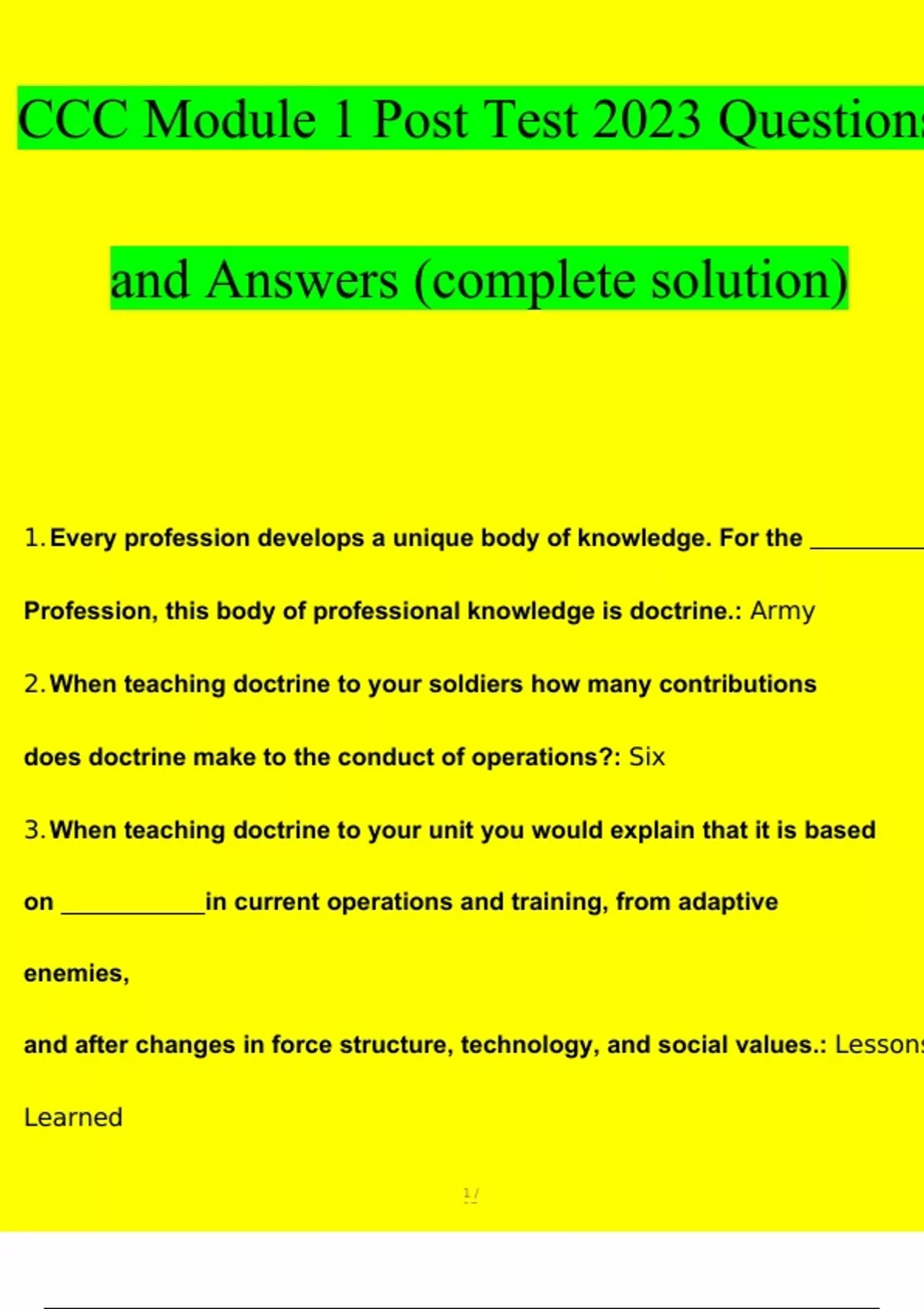 CCC Module 1 Post Test 2023 Questions and Answers 202324