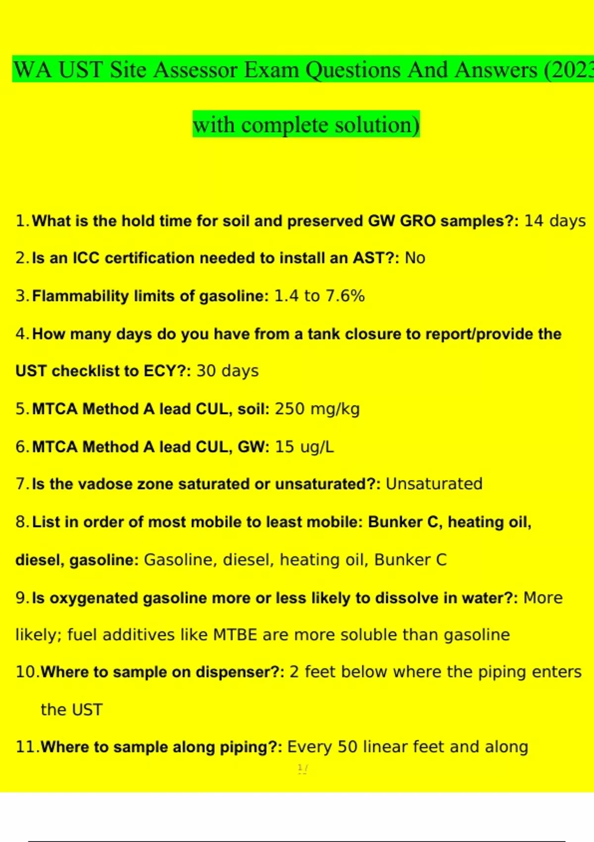 WA UST Site Assessor Exam Questions and Answers 2023 with complete solution