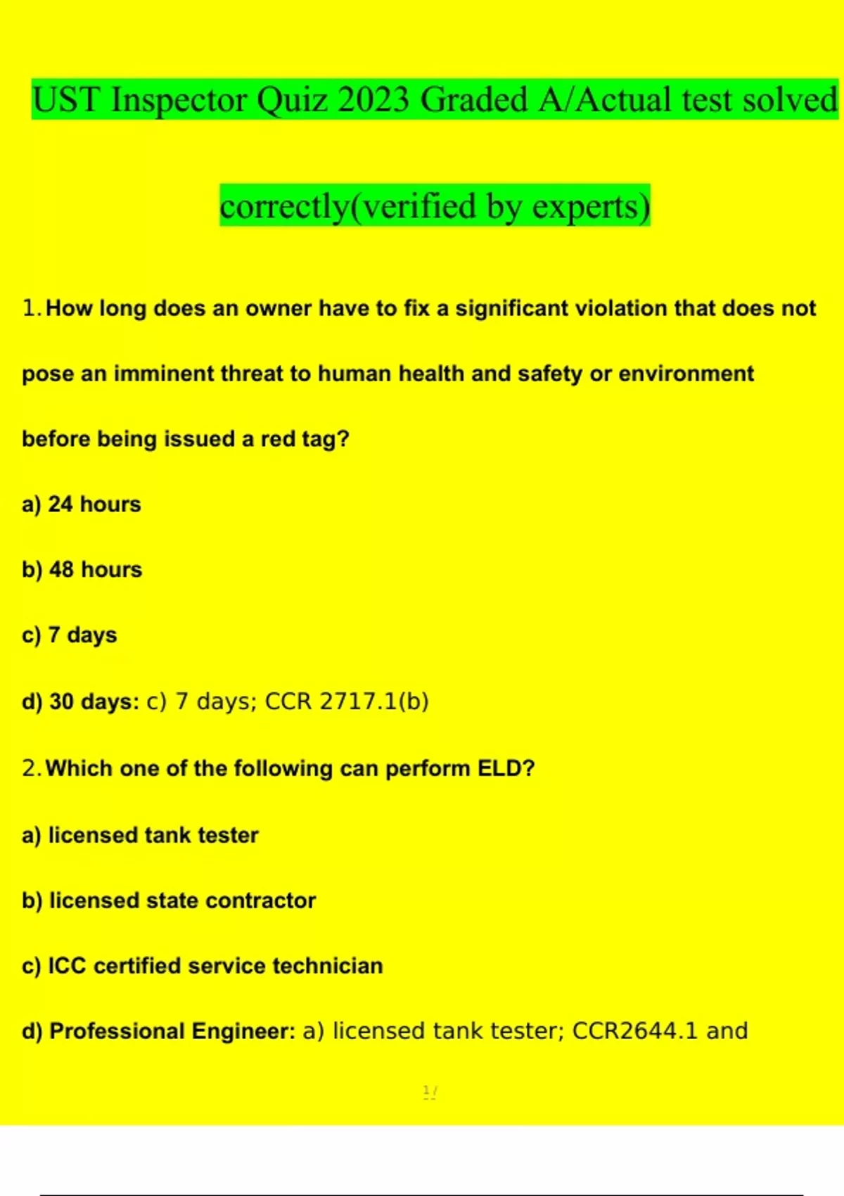 UST Inspector Quiz 2023 Graded A/Actual test solved correctly