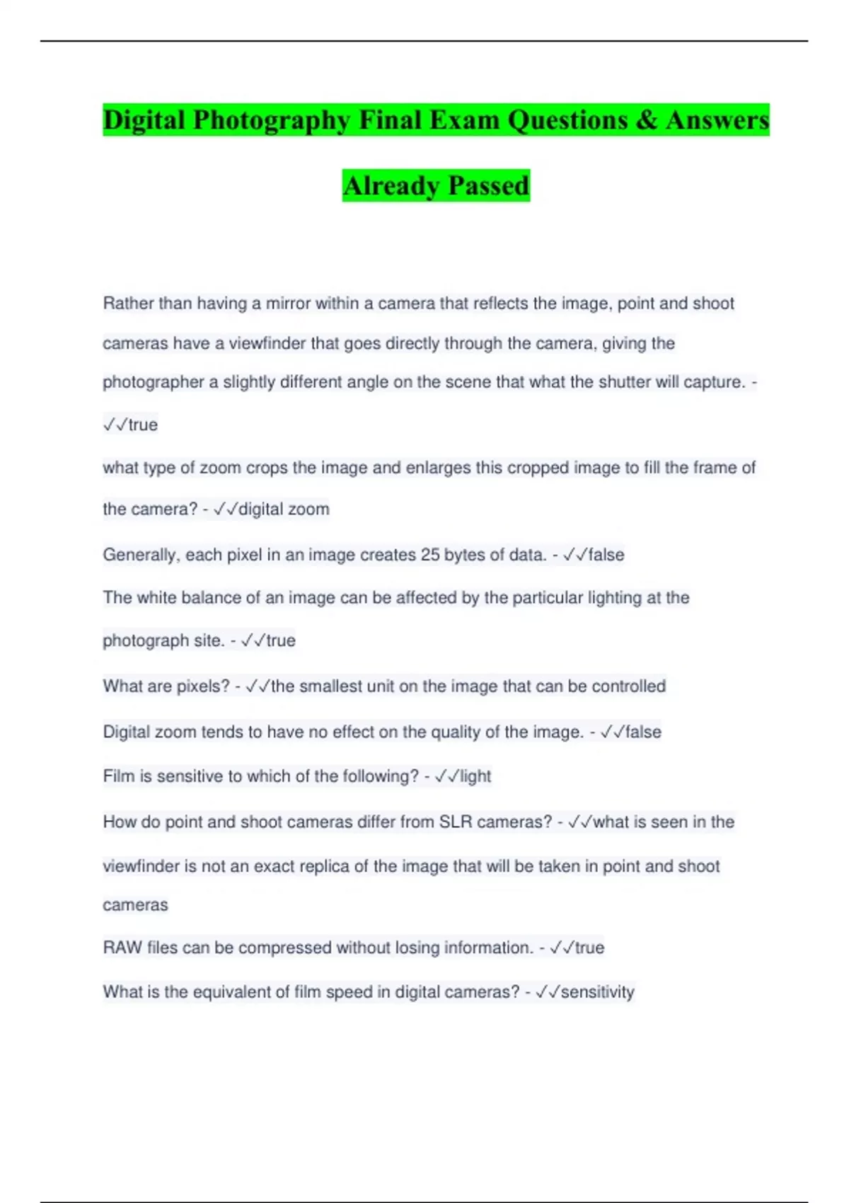 Digital Photography Exams Together with complete solutions Questions and Answers Graded A+ , Latest Update (Verified Answers) (Full Solution Pack)