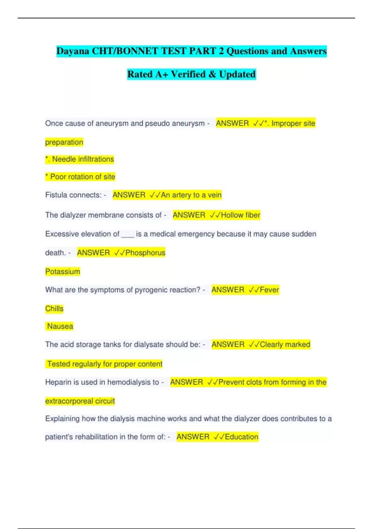 Dayana CHT/BONNET TEST PART 2 Questions and Answers Rated A+ Verified & Updated