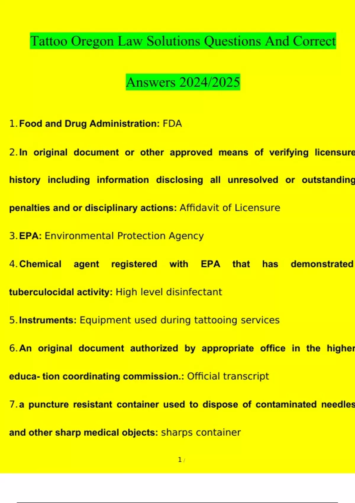 Tattoo Oregon Law solutions questions and correct answers 2024/2025