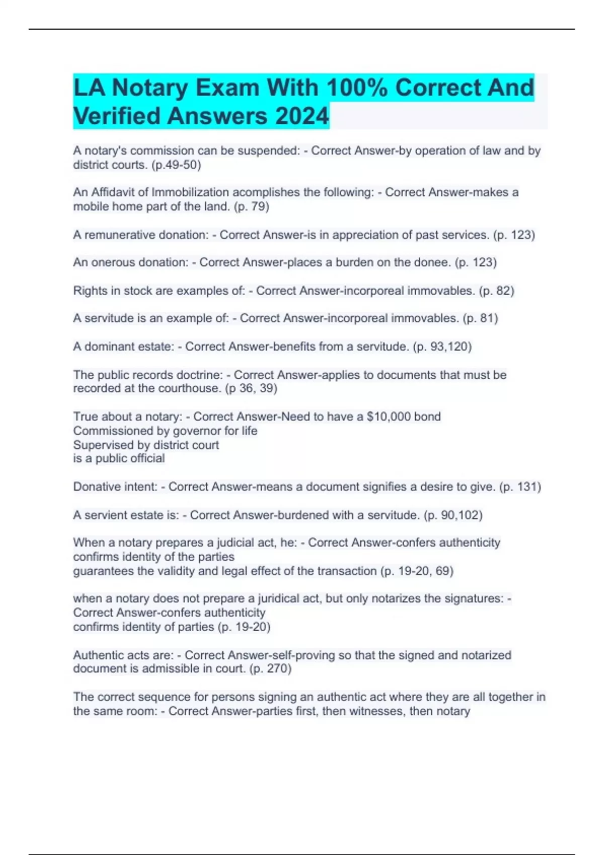 LA Notary Exam With 100% Correct And Verified Answers 2024