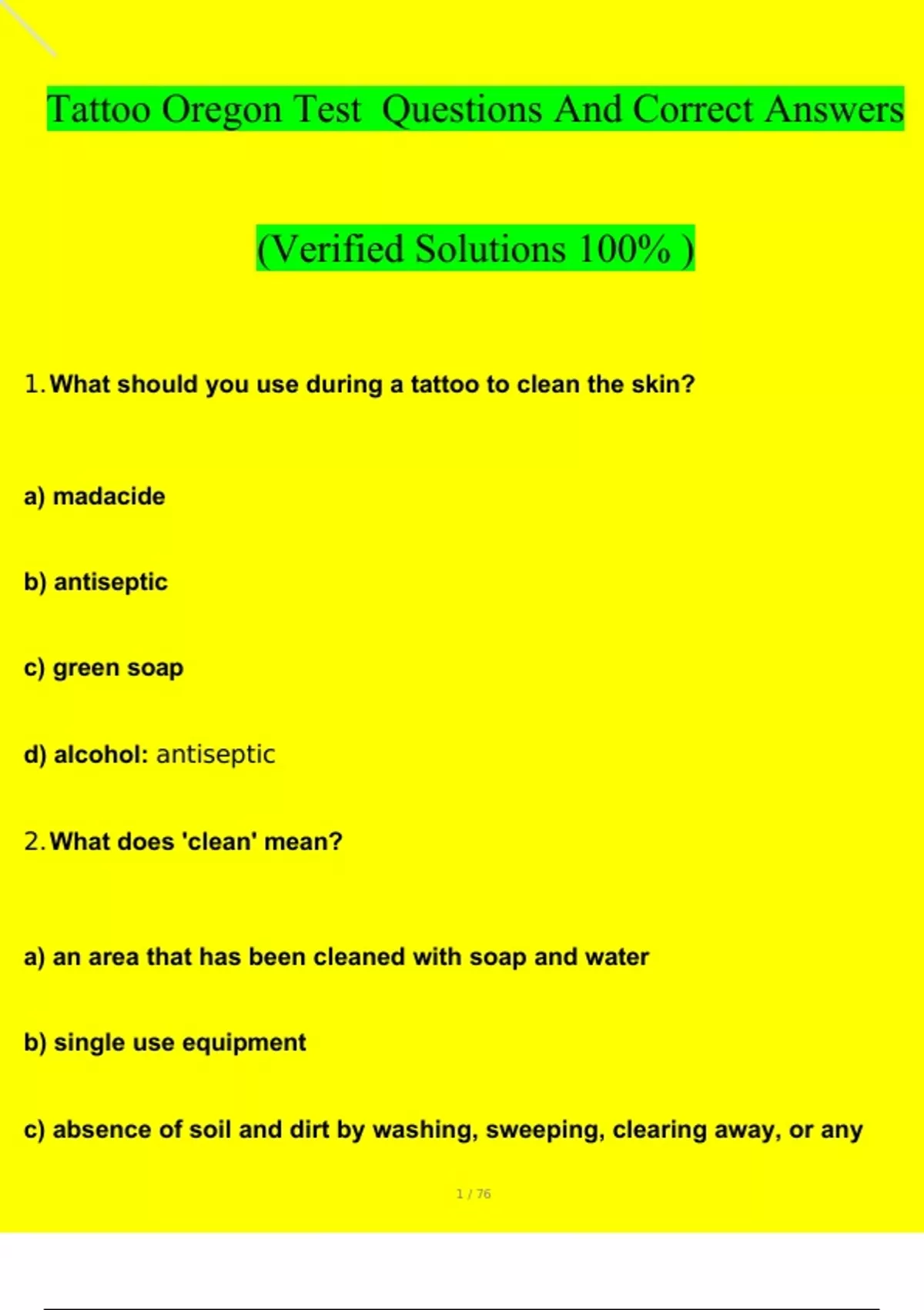 Tattoo Oregon Test Verified Solutions 100% Pass Guarantee