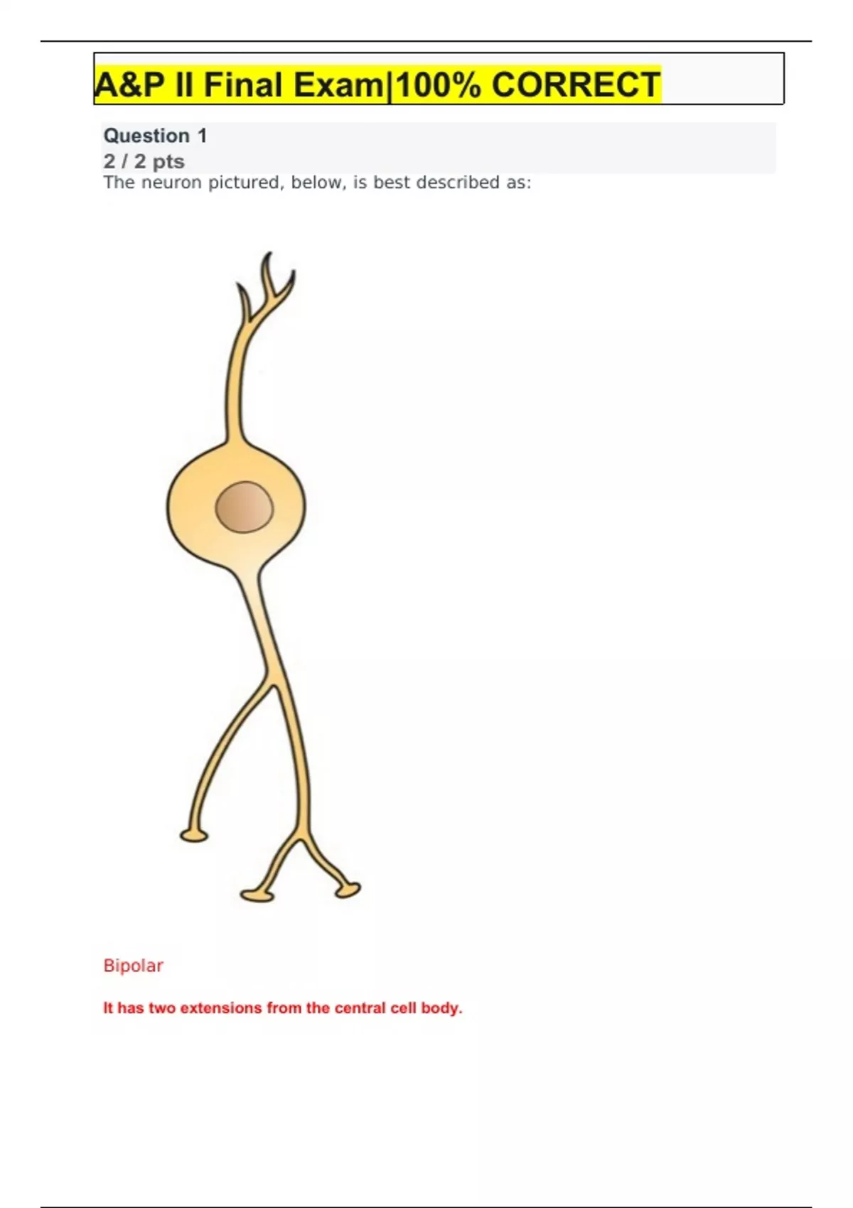 A&P II Final Exam|100% CORRECT