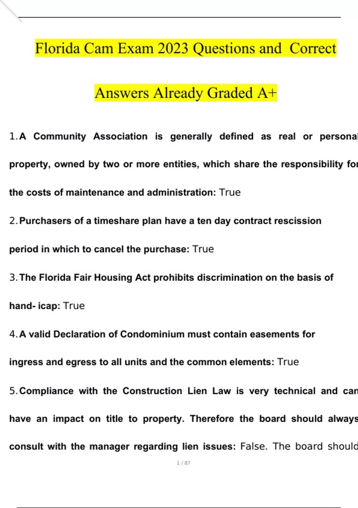 Florida Cam Exam 2023 Questions and Answers Already Graded A+