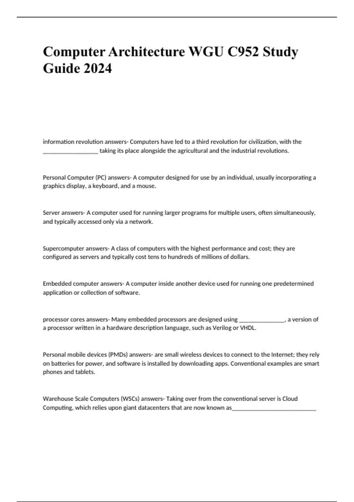 computer architecture wgu c952 study guide 2024